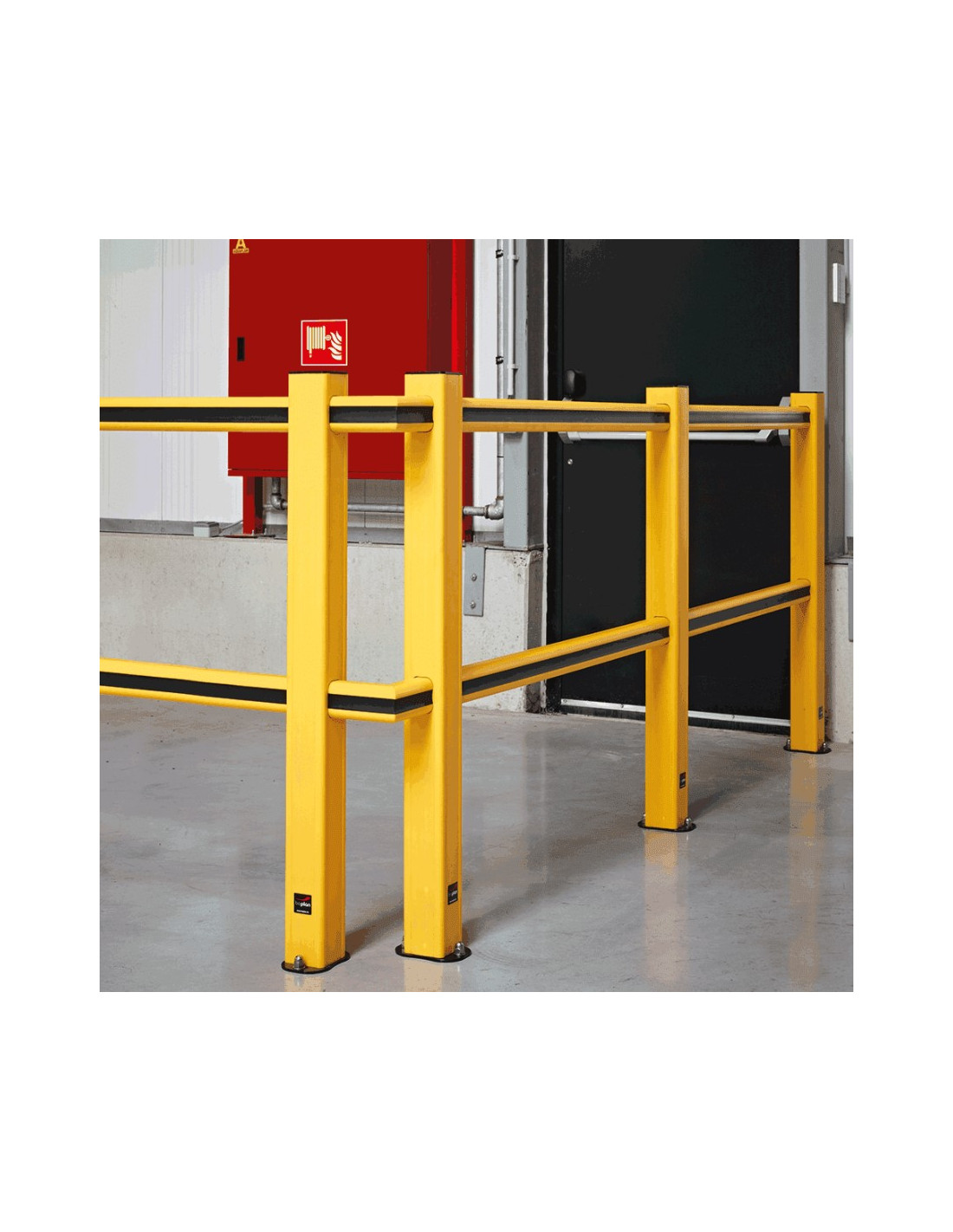 De Boplan Flex Impact veiligheidshek, zwart geel is een effectieve bescherming bij zwaar transportverkeer in jouw magazijn of op jouw bedrijfsterrein. Dit veiligheidshek moet bevestigd worden op de grond. Vandaar dat het product is voorzien van twee stevige gelaste voetplaten met elk vier gaten. De Boplan Flex Impact veiligheidshek met voetplaat is gemaakt van flexibel kunststof waardoor het schokken eenvoudig kan opvangen en er geen beschadiging optreed. Verder heeft dit hek een hoogte van 1150 millimeter en heeft het een opvallende zwarte gele kleur.