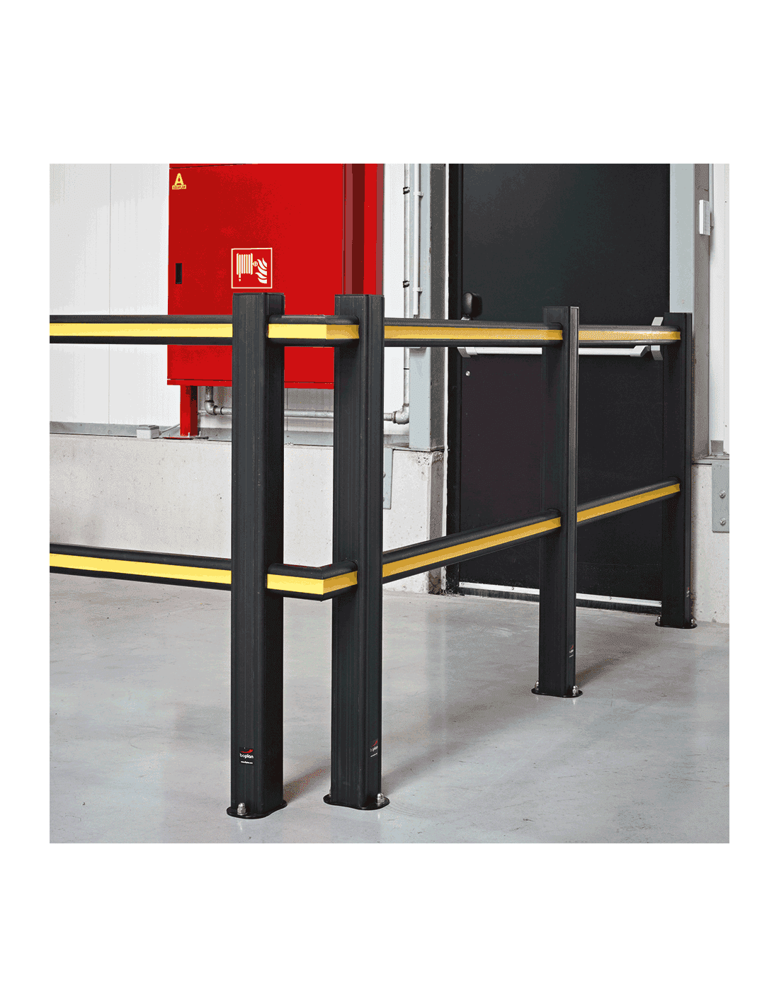 De Boplan Flex Impact veiligheidshek, zwart geel is een effectieve bescherming bij zwaar transportverkeer in jouw magazijn of op jouw bedrijfsterrein. Dit veiligheidshek moet bevestigd worden op de grond. Vandaar dat het product is voorzien van twee stevige gelaste voetplaten met elk vier gaten. De Boplan Flex Impact veiligheidshek met voetplaat is gemaakt van flexibel kunststof waardoor het schokken eenvoudig kan opvangen en er geen beschadiging optreed. Verder heeft dit hek een hoogte van 1150 millimeter en heeft het een opvallende zwarte gele kleur.