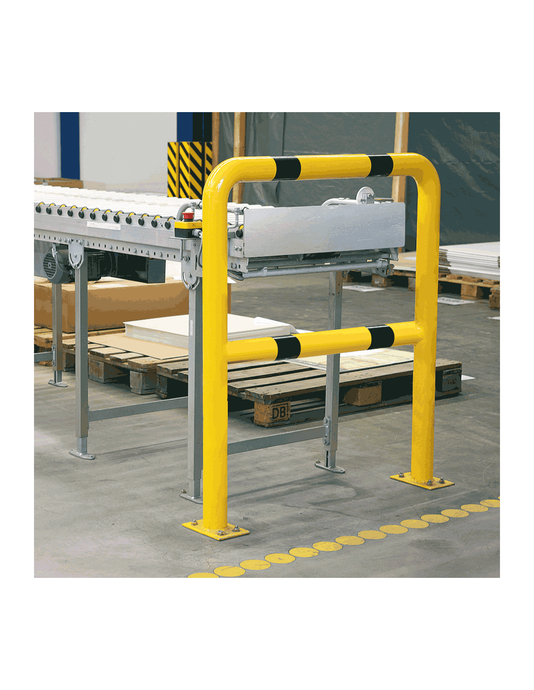 Dit Veiligheidshek met knieligger, 1150 mm is een effectieve bescherming bij licht transportverkeer in jouw magazijn of op jouw bedrijfsterrein. Dit veiligheidshek moet bevestigd worden op de grond. Vandaar dat het product is voorzien van twee stevige gelaste voetplaten met elk vier gaten. De veiligheidshekjes met voetplaat zijn gemaakt van thermisch verzinkt staal. Verder heeft deze beugel een hoogte van 1150 millimeter en heeft het een opvallende geel zwarte kleur. De knieligger heeft een hoogte van 500 millimeter.