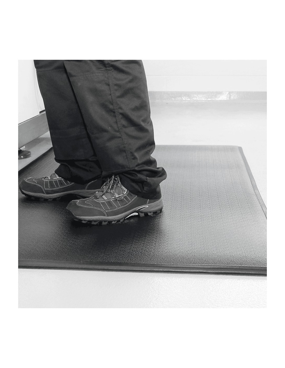Een hoogwaardige en veelzijdige werk mat voor iedere omgeving. Geeft extra grip en standvastigheid, goed voor houding en ontlasting van spieren en botten. Voorzien van goede demping en geschikt voor aan werkbanken. De mat heeft een gehamerd profiel wat er voor zorgt dat de mat vrij dun is. Ondanks de lage dikte van de mat is het product voor op de vloer zeer geluidsabsorberend. Ook geeft de mat een goede isolatie tegen koude vloeren.