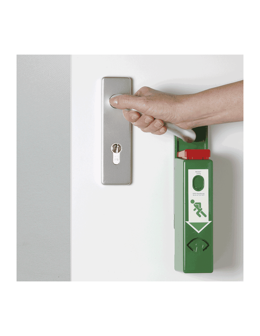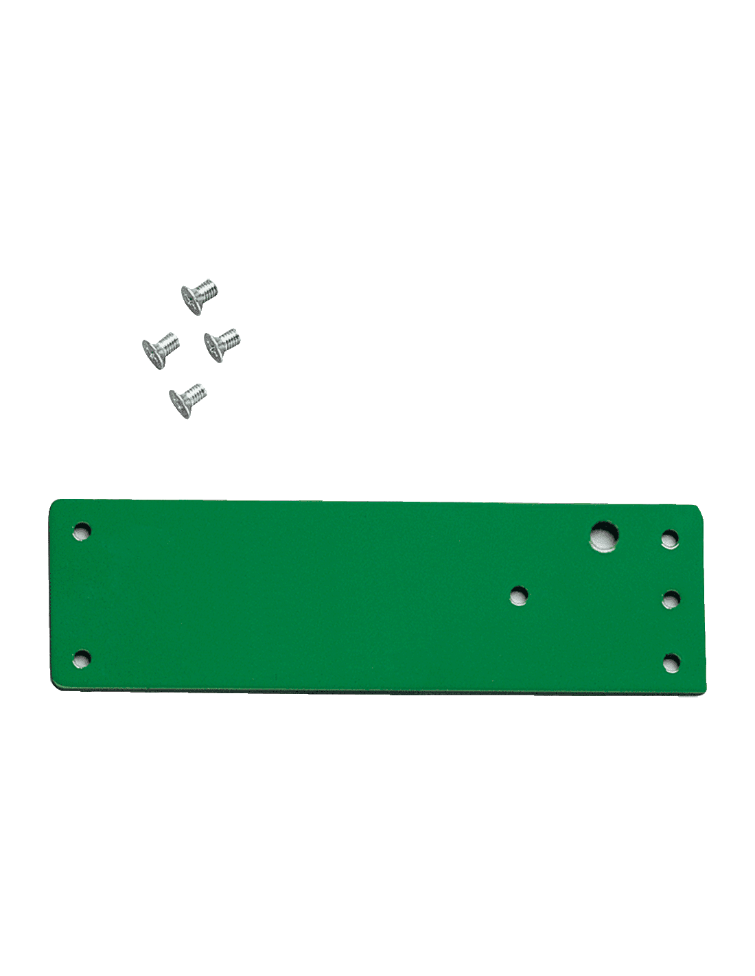 Ter bevestiging op brandveiligheids- en glazen deuren. Zowel links als rechts inzetbaar. RAL 6029 groene kleur, afmetingen zijn 52 x 175 x 3 mm.