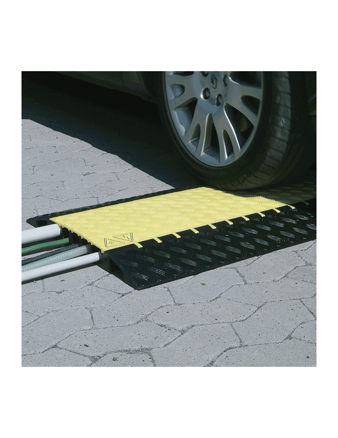 Met zijn opvallende gele en zwarte kleurstelling is de kabelbrug goed zichtbaar, waardoor de veiligheid verder wordt verbeterd. Daarnaast is de kabelbrug gemaakt van robuust, recyclebaar thermoplastisch polyurethaan, wat zorgt voor een duurzaam product.