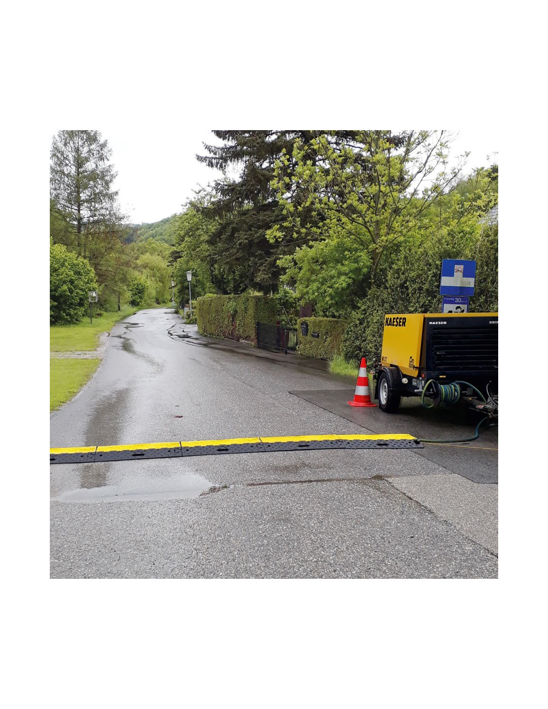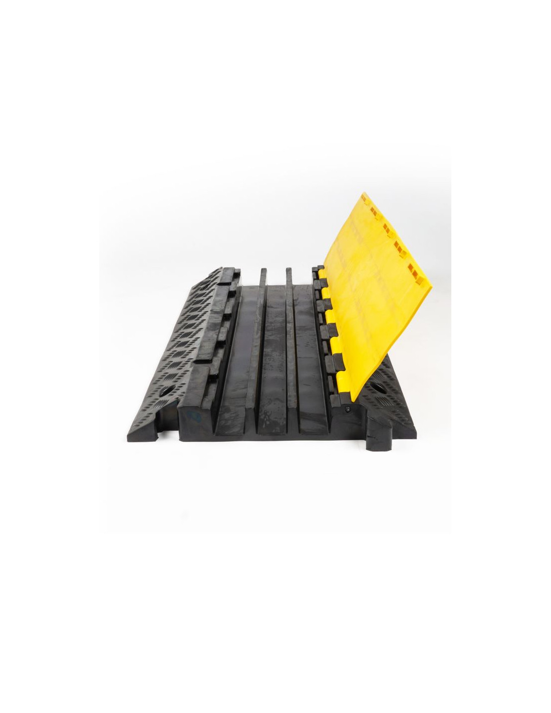 Bescherm je kabels, slangen en leidingen tegen zware voertuigen met deze kabelbrug met 3 kanalen. Of je nu op zoek bent naar bescherming voor je laadkabel of andere bekabeling, deze kabelbrug biedt de oplossing. De kabelbrug is verkrijgbaar in opvallend geel zwart en is gemaakt van gerecycled rubber.