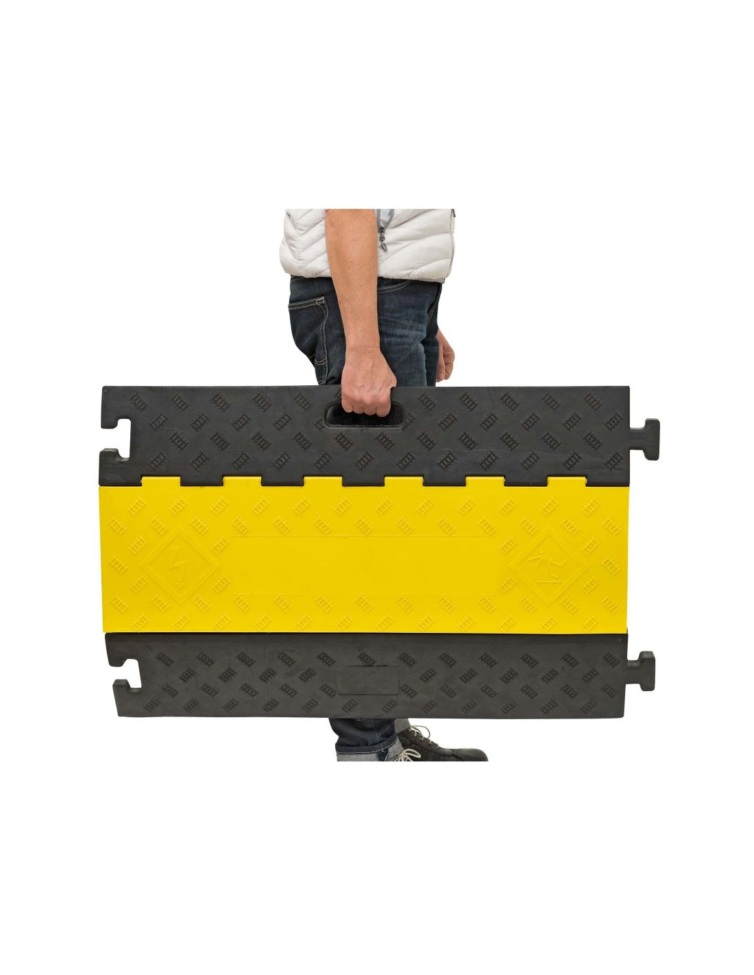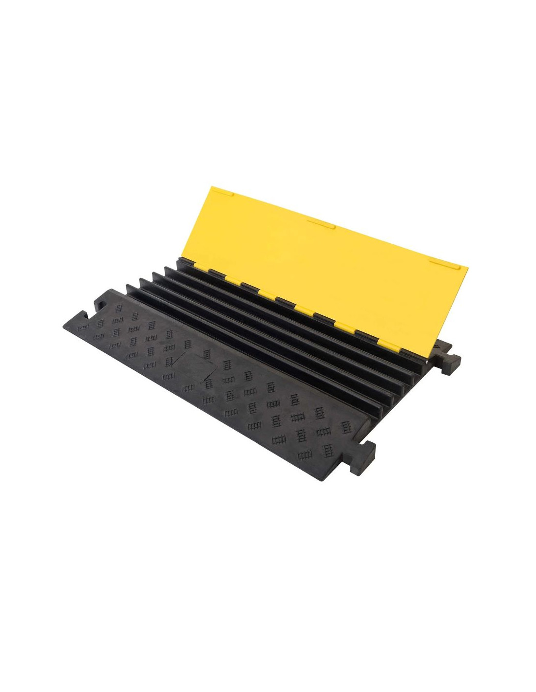 Bescherm je kabels, slangen en leidingen tegen zware voertuigen met deze kabelbrug met 5 kanalen. Of je nu op zoek bent naar bescherming voor je laadkabel of andere bekabeling, deze kabelbrug biedt de oplossing. De kabelbrug is verkrijgbaar in opvallend geel zwart en is gemaakt van gerecycled rubber.