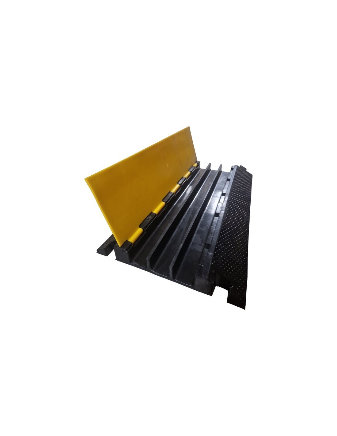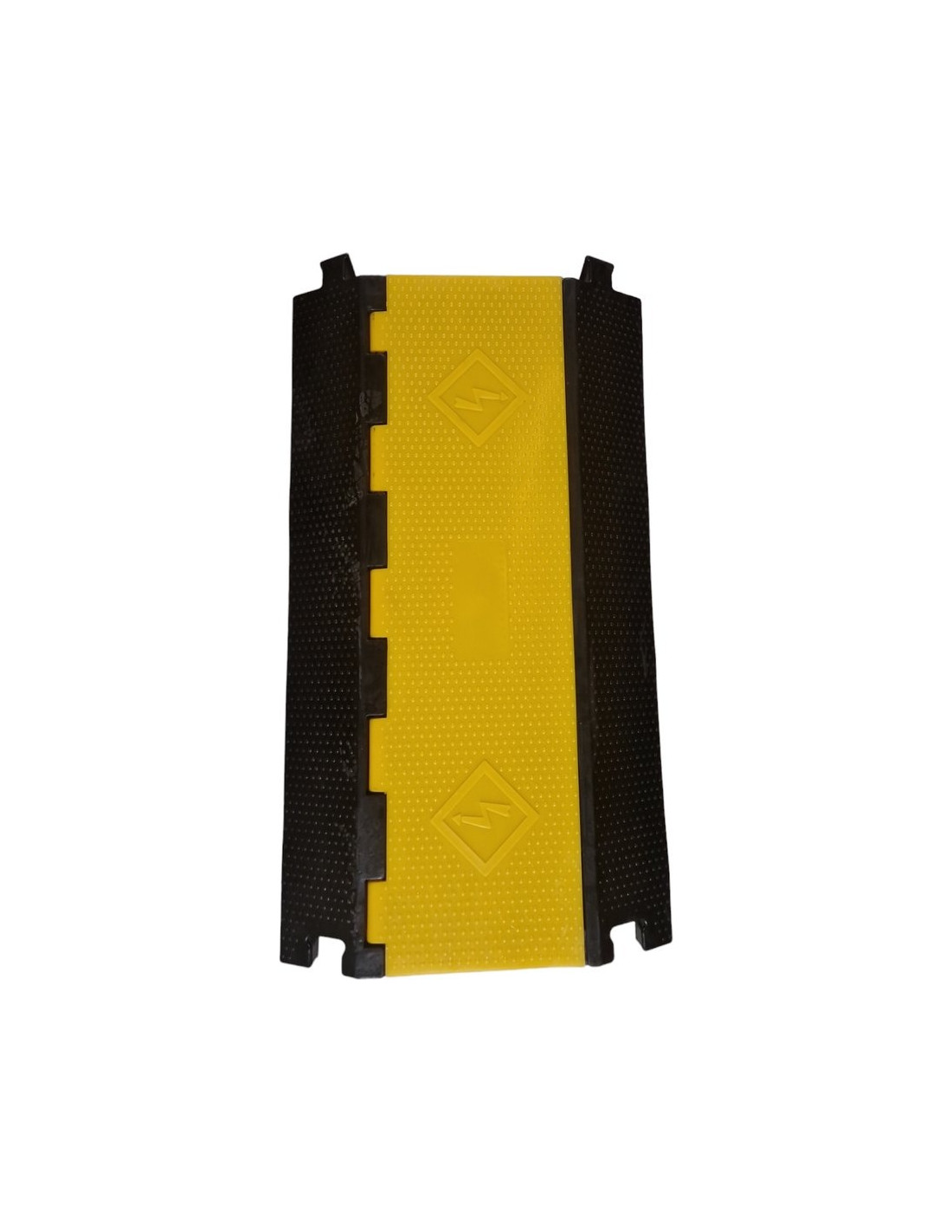 De Kabelbrug met klep - voor 3 kabels van Mexxo is een robuuste en veilige oplossing voor het beschermen van kabels in drukbezochte omgevingen. Dankzij het stevige rubberen materiaal en de opvallende zwart-gele kleur is deze kabelbrug zowel duurzaam als goed zichtbaar. De antislipstructuur op de bovenkant voorkomt uitglijden, waardoor de brug geschikt is voor zowel voetgangers als lichte voertuigen.