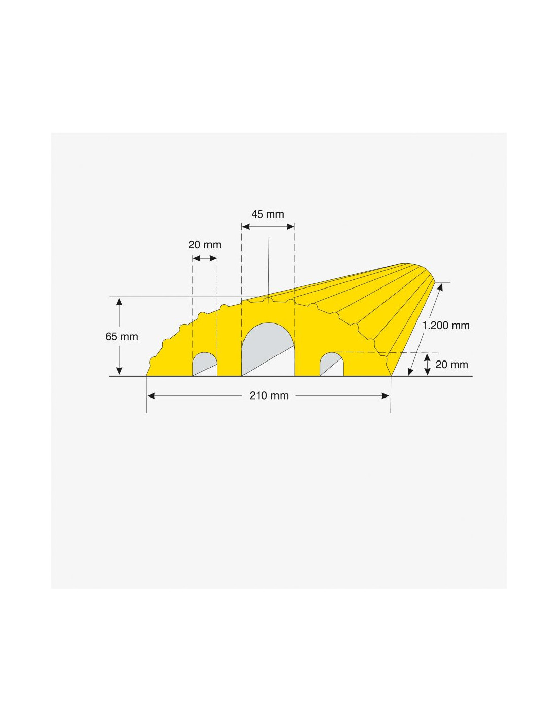 Met 3 kanalen, waarvan 2 kanalen een breedte hebben van 20 mm en 1 kanaal een breedte van 45 mm, biedt deze kleine kabelbrug voldoende ruimte om meerdere kabels en slangen veilig te verbergen. De gele kleur zorgt ervoor dat de kabelbrug goed opvalt.