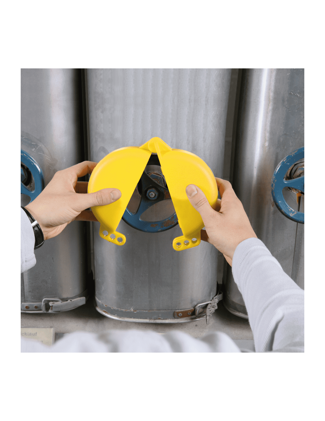 De Catu afsluitervergrendeling in opvallend geel is de ideale oplossing voor het veiligstellen van gas-, water-, elektra-, sprinkler- en rioolafsluiters. Met vijf verschillende beschikbare afmetingen, kun je altijd de juiste afsluitervergrendeling kiezen voor jouw specifieke toepassing. De afsluitvergrendeling is vervaardigd uit duurzaam polyurethaan, wat zorgt voor betrouwbaarheid en een lange levensduur. Het bestaat uit twee halvemaanvormige schalen die het klepwiel stevig omsluiten, waardoor de afsluiter effectief vergrendeld wordt.