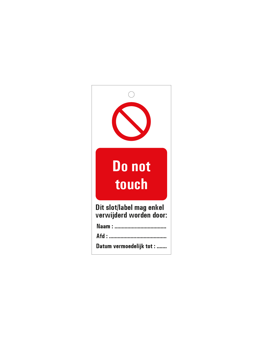 Waarschuwingstags met een verbod erop geven aan dat bepaalde handelingen verboden zijn. Wanneer werknemers toch deze handeling uitvoeren kunnen zij zichzelf en collega’s in grote gevaren brengen. De labels zijn voorzien van een opvallend rode kleur en zijn gemaakt van PVC.