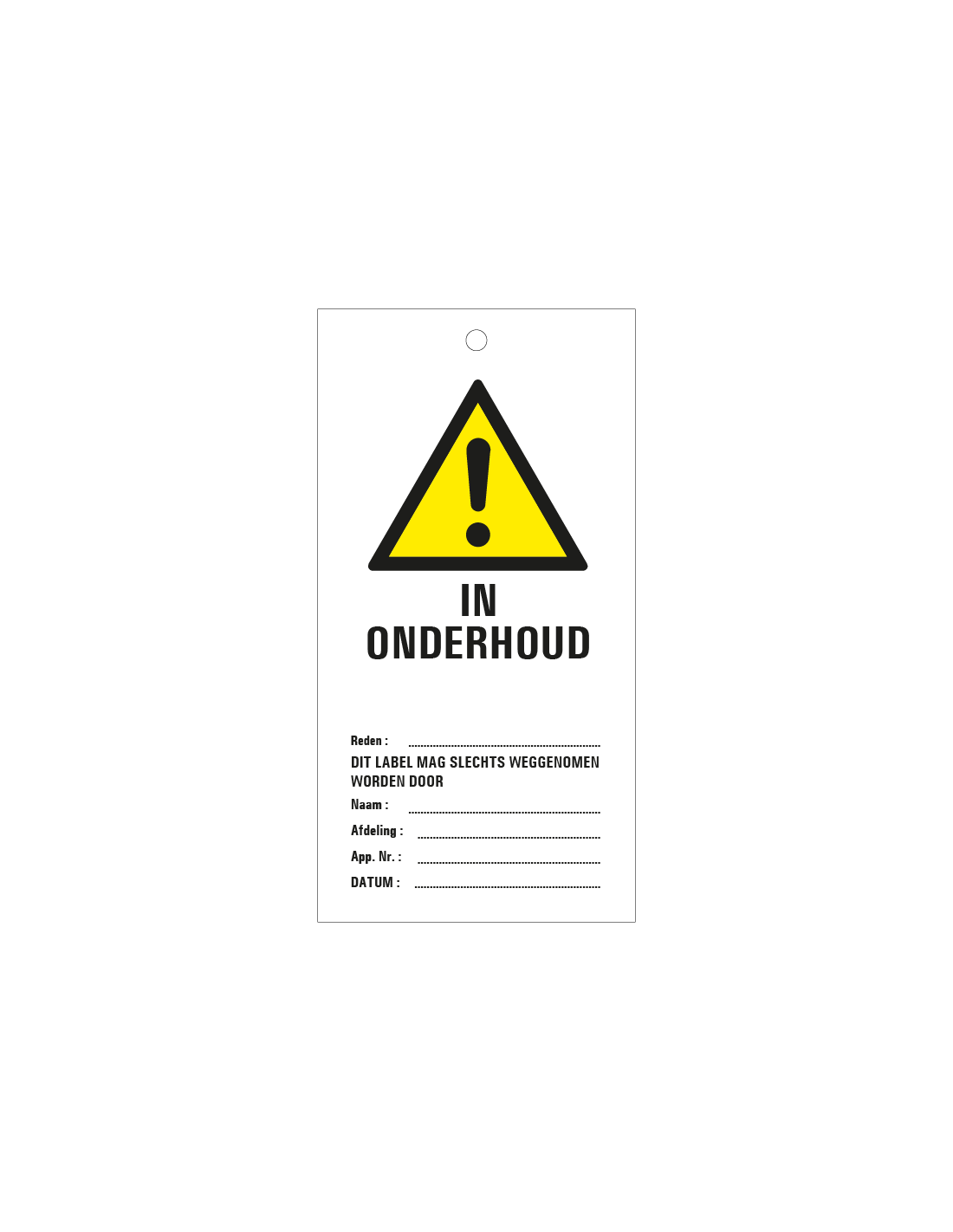 Belangrijkste kenmerken In onderhoud veiligheidslabel, per 10 stuks