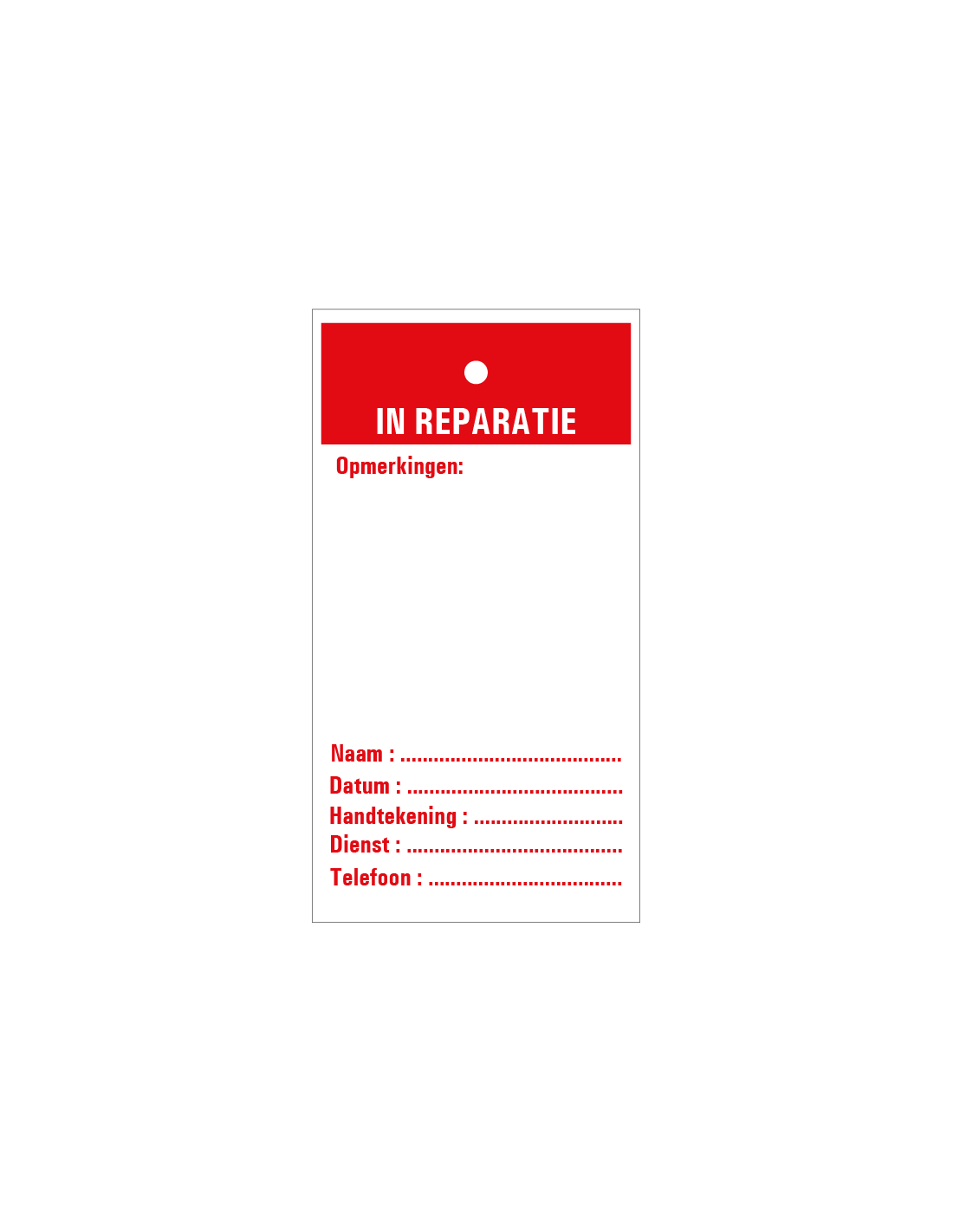 - Inspectietag met de tekst 'In reparatie'