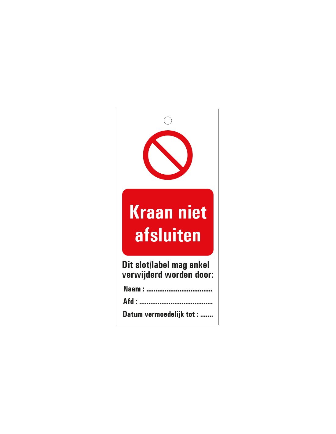 Belangrijkste kenmerken Kraan niet afsluiten waarschuwingslabel
