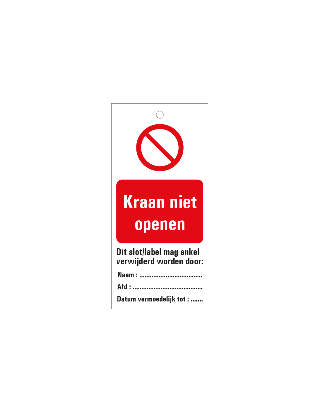 Belangrijkste kenmerken Kraan niet openen waarschuwingslabel