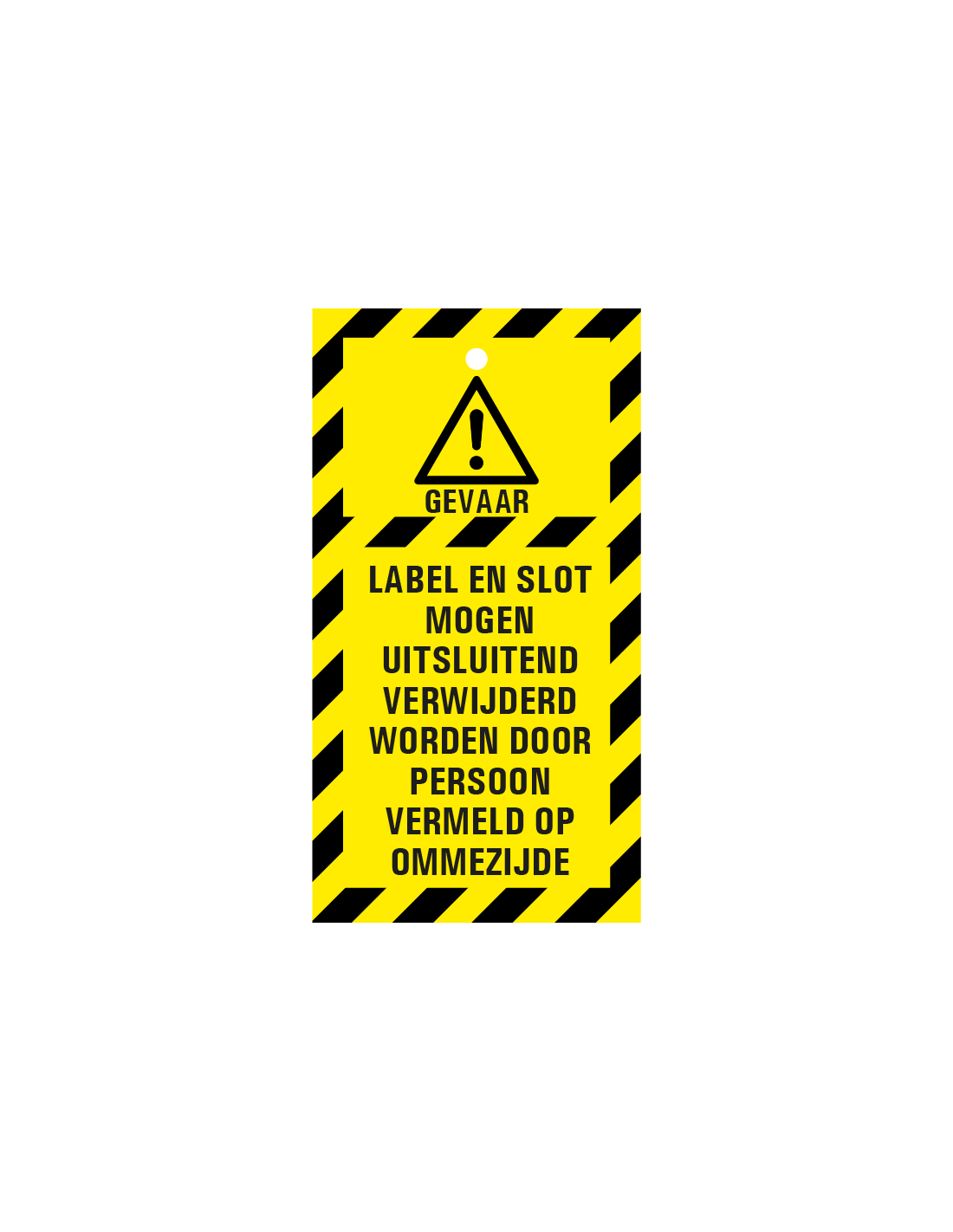 Dit waarschuwingstag is gemaakt van 0,3mm dik PVC en is niet te scheuren. De tag is verkrijgbaar in de maten 50 x100mm en 80 x 150mm en kunt u beschrijven met een viltstift.