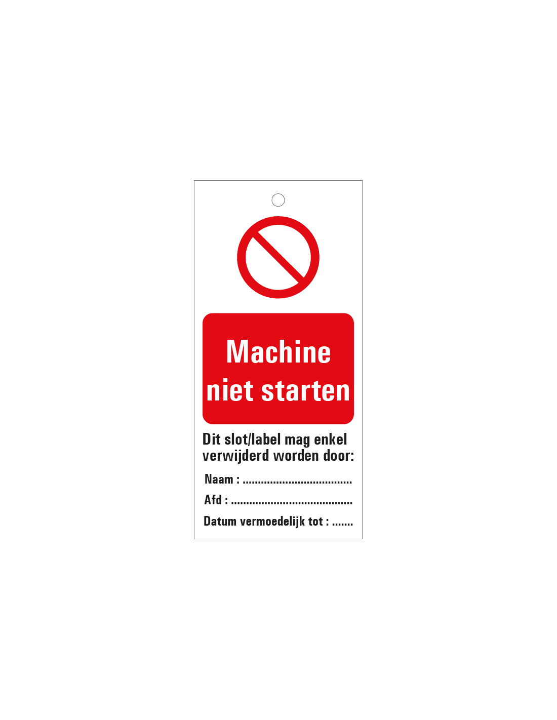 Belangrijkste kenmerken Machine niet starten waarschuwingslabel