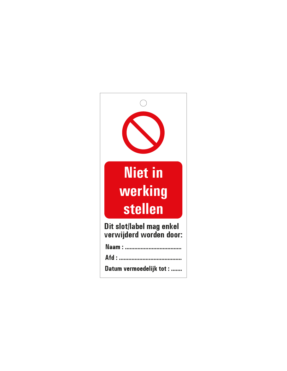 Veiligheidslabel met een verbod erop geven aan dat bepaalde handelingen verboden zijn. Wanneer werknemers toch deze handeling uitvoeren kunnen zij zichzelf en collega’s in grote gevaren brengen. De labels zijn voorzien van een opvallend rode kleur en zijn gemaakt van PVC.