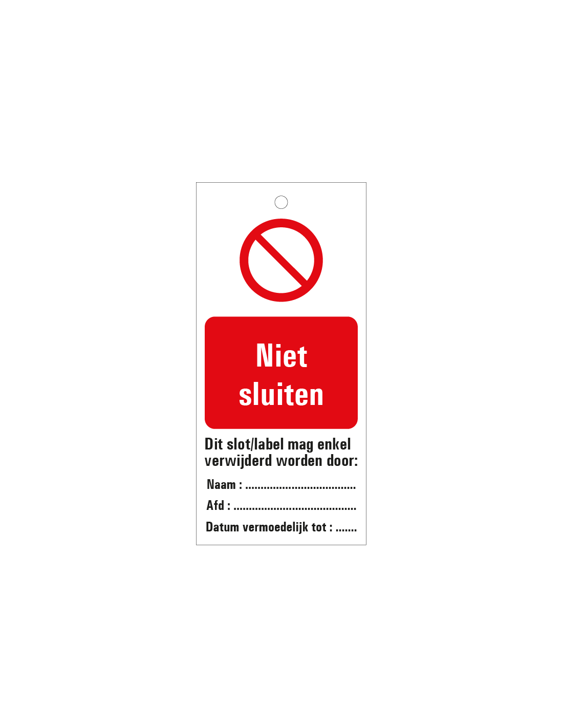 Waarschuwingstags met een verbod erop geven aan dat bepaalde handelingen verboden zijn. Wanneer werknemers toch deze handeling uitvoeren kunnen zij zichzelf en collega’s in grote gevaren brengen. De labels zijn voorzien van een opvallend rode kleur en zijn gemaakt van PVC.