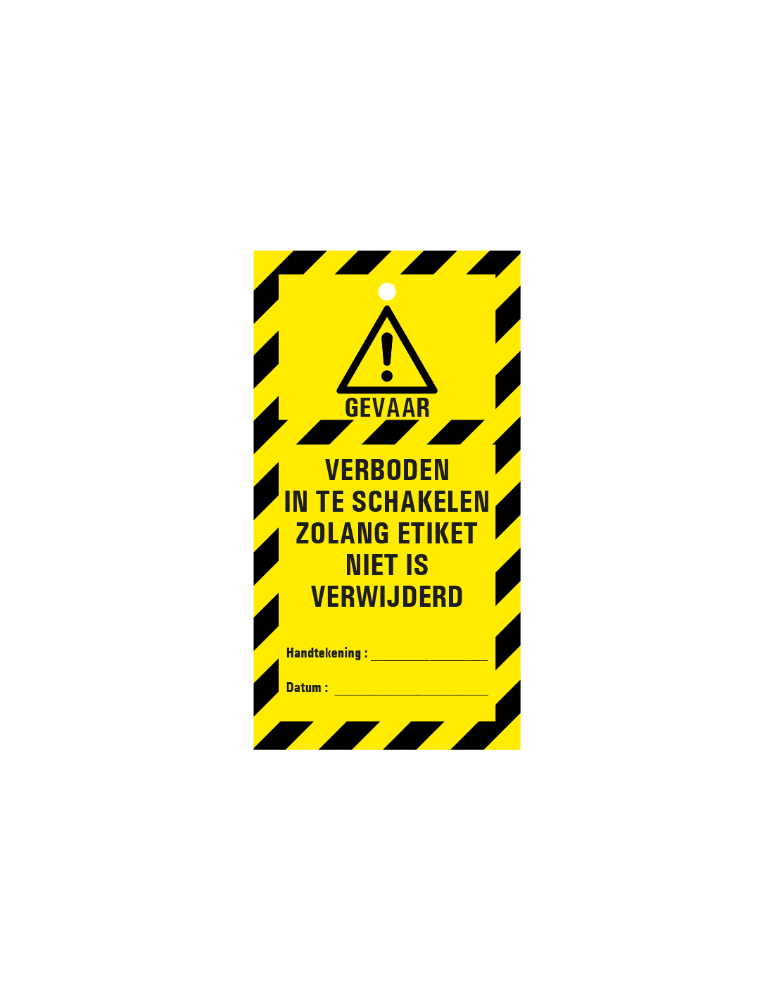 Dit waarschuwingstag is gemaakt van 0,3mm dik PVC en is niet te scheuren. De tag is verkrijgbaar in de maten 50 x100mm en 80 x 150mm en kunt u beschrijven met een viltstift.