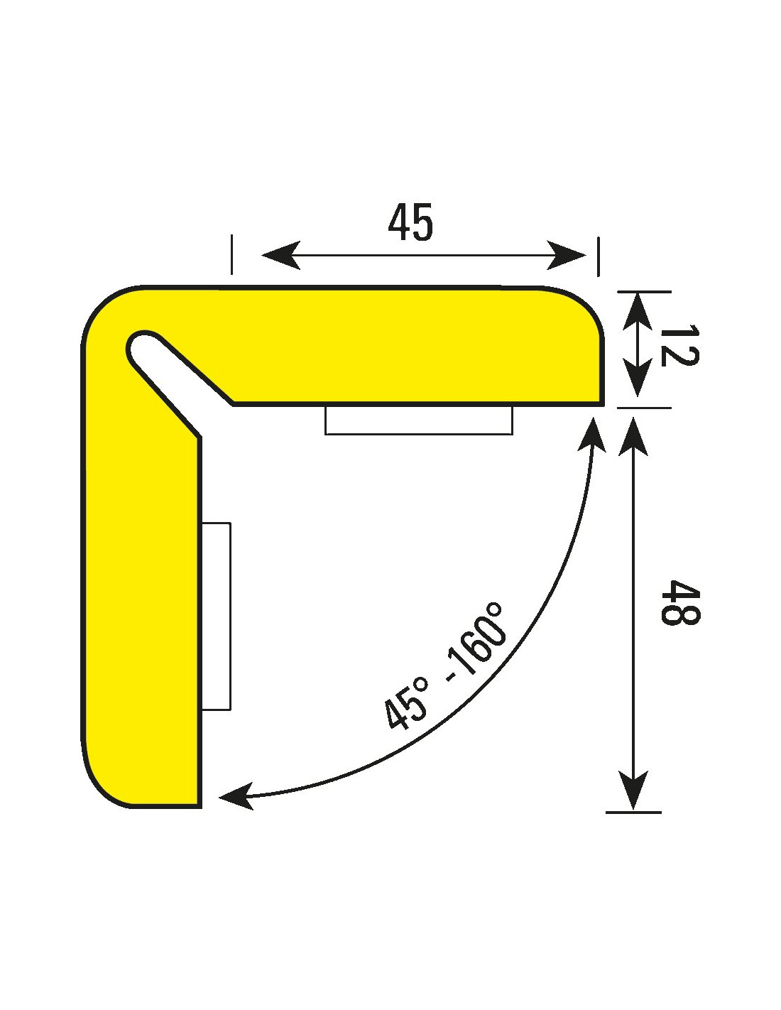 De Knuffi stootrand type H+ FLEX biedt bescherming tegen stoten of beschadigen van hoeken. Deze stootrand kan op een maximale hoek van 160 graden geplakt worden waarbij het een vlakke bescherming geeft voor uw objecten en tegen stoten. De stootrand kan op hoeken gemonteerd worden van 45 tot 160 graden. De dikte van de stootrand is 12 mm en heeft een totale breedte van 60 mm. De breedte van de binnenkant van de 90 graden hoek is 48 mm. De geel-zwarte variant zorgt voor een betere zichtbaarheid.