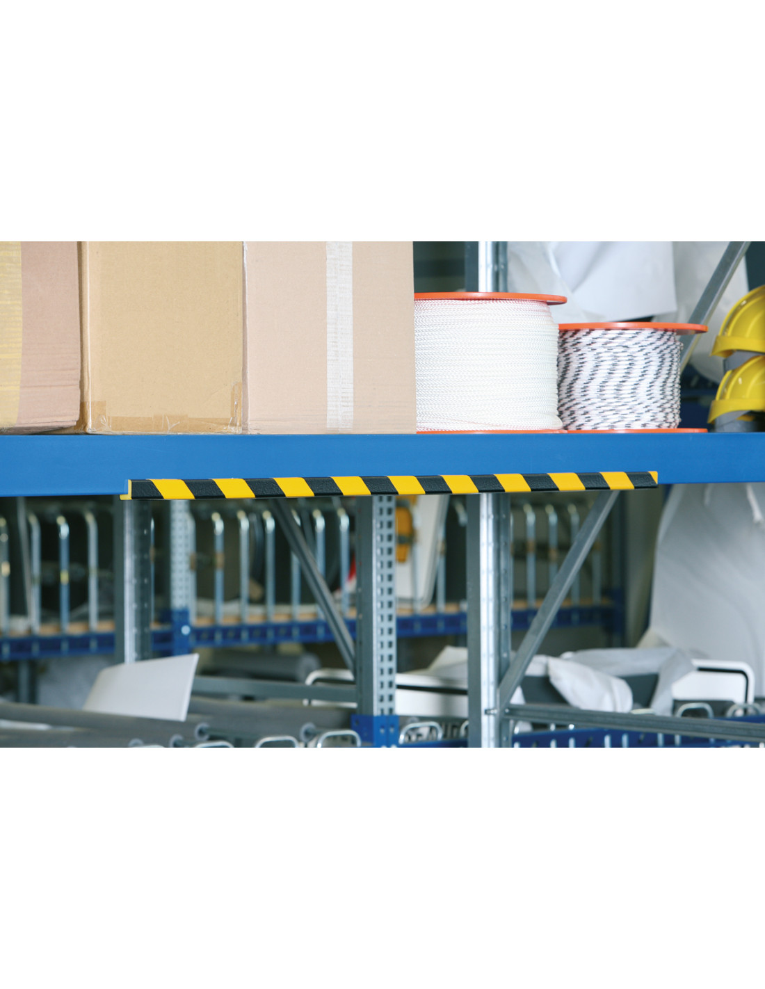 De hoeken die op die afbeelding staan komen vooral voor in magazijnen waardoor de stootrand bij uitstek geschikt om gevaren te voorkomen. Het product is geschikt voor zowel binnen en buiten en is op maat te snijden.
