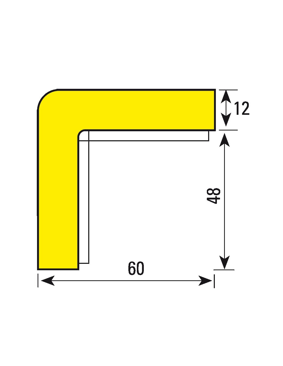 De Knuffi stootrand type H+ biedt bescherming tegen stoten of beschadigen van hoeken. Deze stootrand kan op een 90 graden hoek geplakt worden waardoor het een vlakke bescherming geeft voor uw objecten en tegen stoten. De dikte van de stootrand is 12 mm en heeft een totale breedte van 60 mm. De breedte van de binnenkant van de 90 graden hoek is 48 mm. De geel-zwarte variant zorgt voor een betere zichtbaarheid.