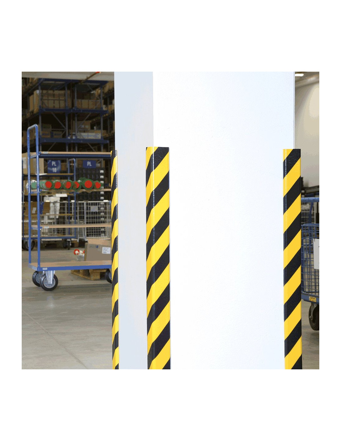De hoeken die op die afbeelding staan komen vooral voor in magazijnen waardoor de stootrand bij uitstek geschikt om gevaren te voorkomen. Het product is geschikt voor zowel binnen en buiten en is op maat te snijden.