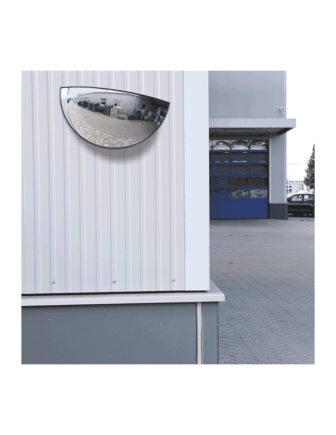 De bolspiegel SuperVision met een kijkhoek van 180 graden is geschikt voor zowel binnen als buiten gebruik. Met zijn slagvaste en groothoekwerking biedt hij een uitstekende zichtbaarheid en veiligheid.