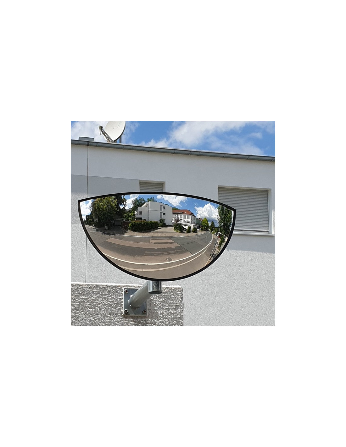 De HORIZONT industriële drieweg spiegel is de perfecte oplossing voor situaties waar een breed zicht vereist is, zoals bij verkeersleiding en procesbewaking. Deze 180°-groothoekspiegel biedt een briljant en vervormingsvrij beeld, waardoor u altijd een duidelijk overzicht heeft van uw omgeving. De robuuste constructie van slag- en stootvast acrylglas zorgt voor een lange levensduur en betrouwbare prestaties, zelfs in veeleisende omstandigheden.