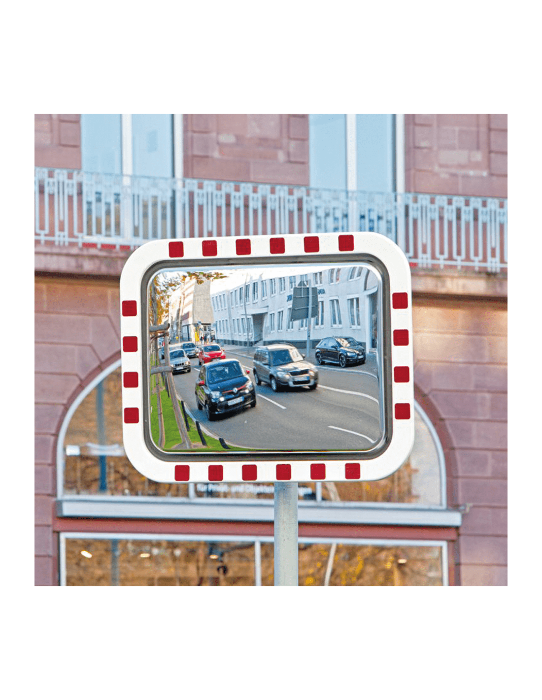 De verkeersspiegel is vervaardigd van duurzaam roestvrij staal met een weersbestendig kunststof frame, waardoor hij bestand is tegen alle weersomstandigheden en langdurige prestaties levert. Het opvallende rood-witte kleurenschema trekt de aandacht en verbetert de zichtbaarheid, waardoor het een uitstekende keuze is voor diverse locaties.