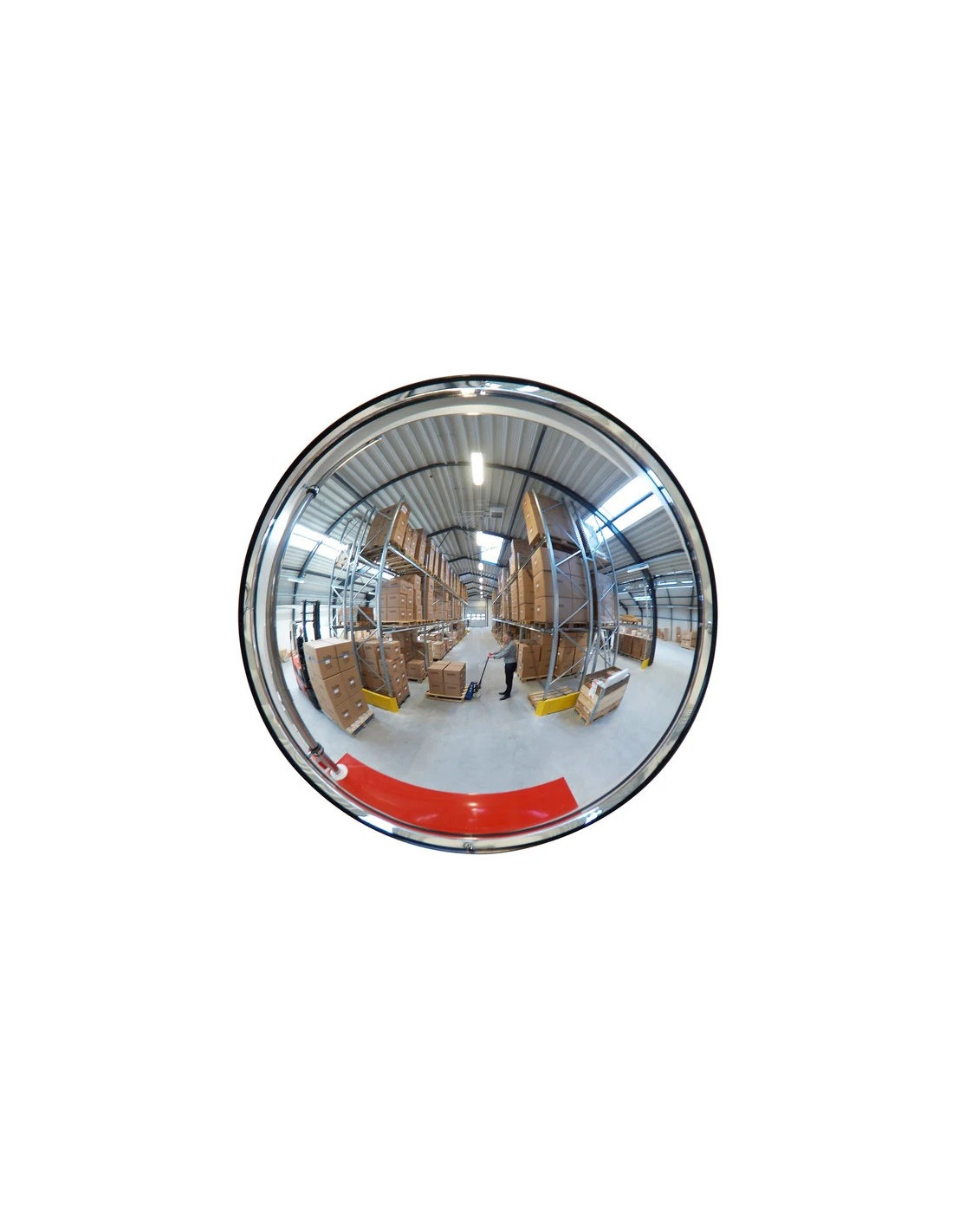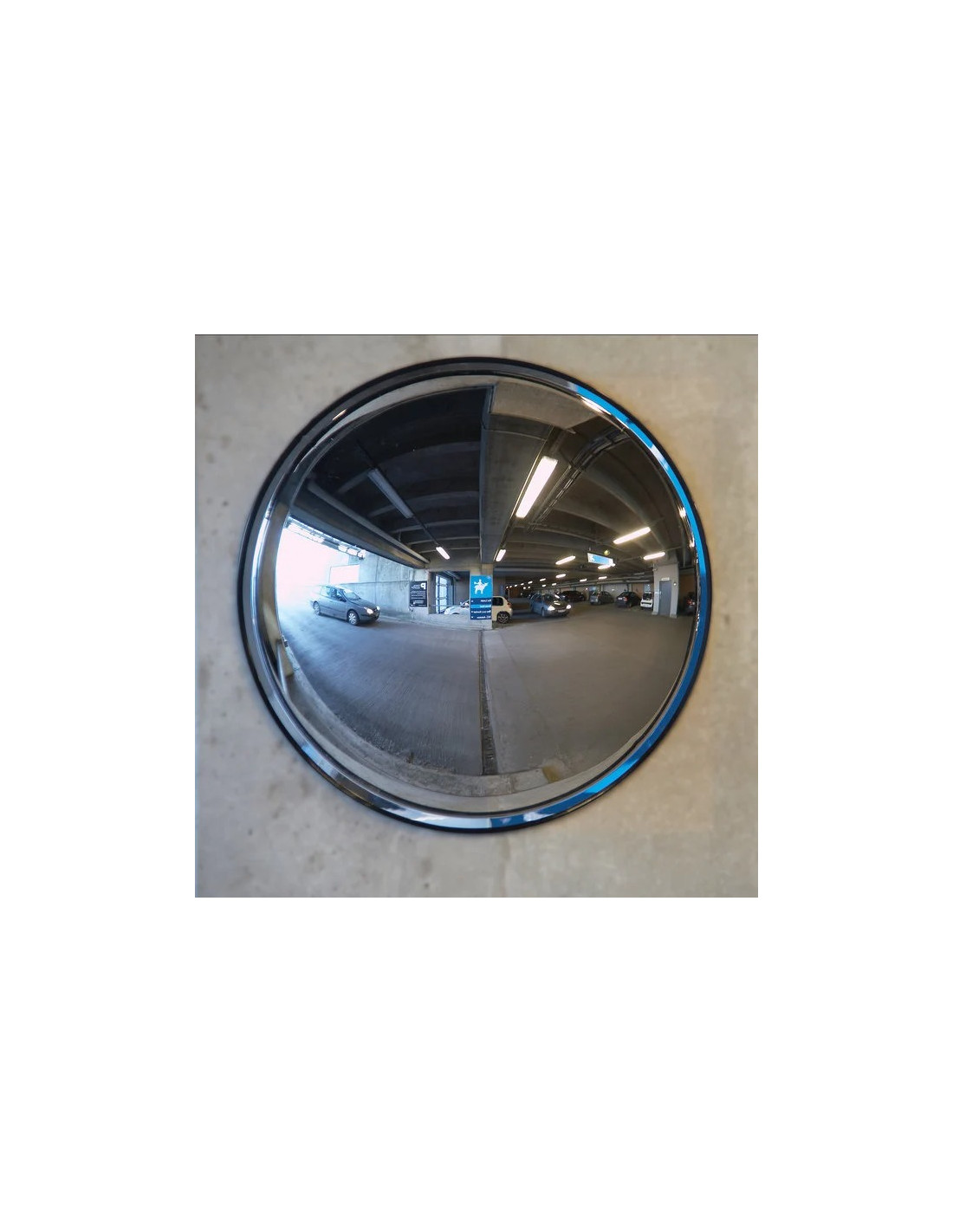De INDOOR ruimtelijke observatiespiegel rond verhoogt de veiligheid op werkplekken met beperkt zicht. De vlakke spiegelkromming zorgt voor een breed observatieveld, ideaal voor situaties waar overzicht cruciaal is, zoals in productieruimtes of logistieke zones.