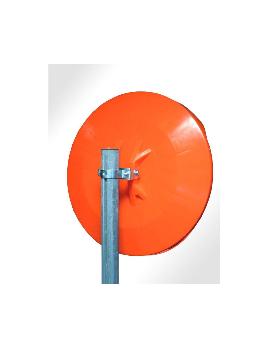 Het installeren van de spiegel is eenvoudig en vereist slechts een paal met een minimale diameter van 60 mm. De spiegel wordt geleverd met een kunststof behuizing in een opvallende oranje kleur, waardoor hij gemakkelijk te herkennen is in het verkeer.