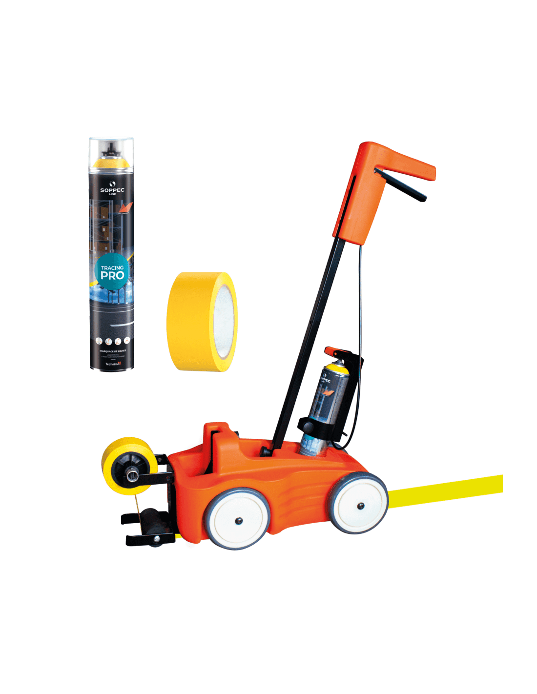 Deze Soppec markeerwagen bevat 4 wielen voor een optimale, strakke en snelle belijning. Hiermee kunt u scherpe bochten en hoeken eenvoudig aanbrengen. Verder kunt u voor een optimaal resultaat het beste eerst in een snelle handeling een dunne laag aanbrengen, om vervolgens met een langzamere spuitgang een tweede laag te plaatsen. Verder kan met de tape applicator ook op een nette manier markeringstape aangebracht worden.
