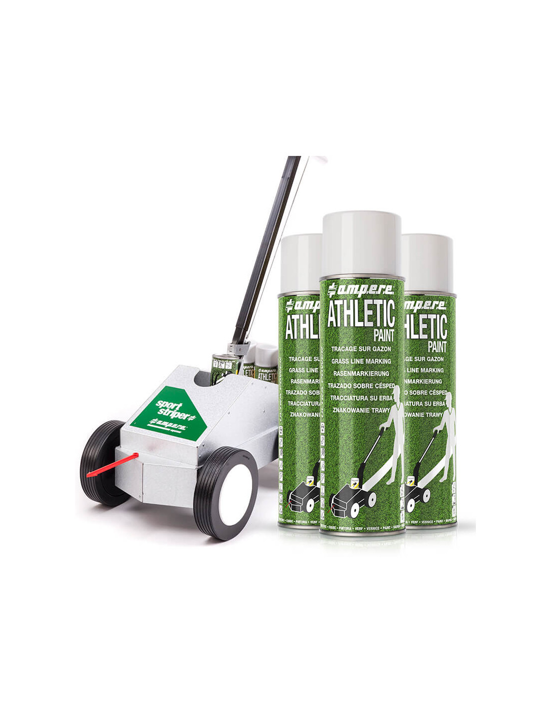 - Verkrijgbaar zonder en met 12 bussen witte belijningsverf met een inhoud van 650 ml