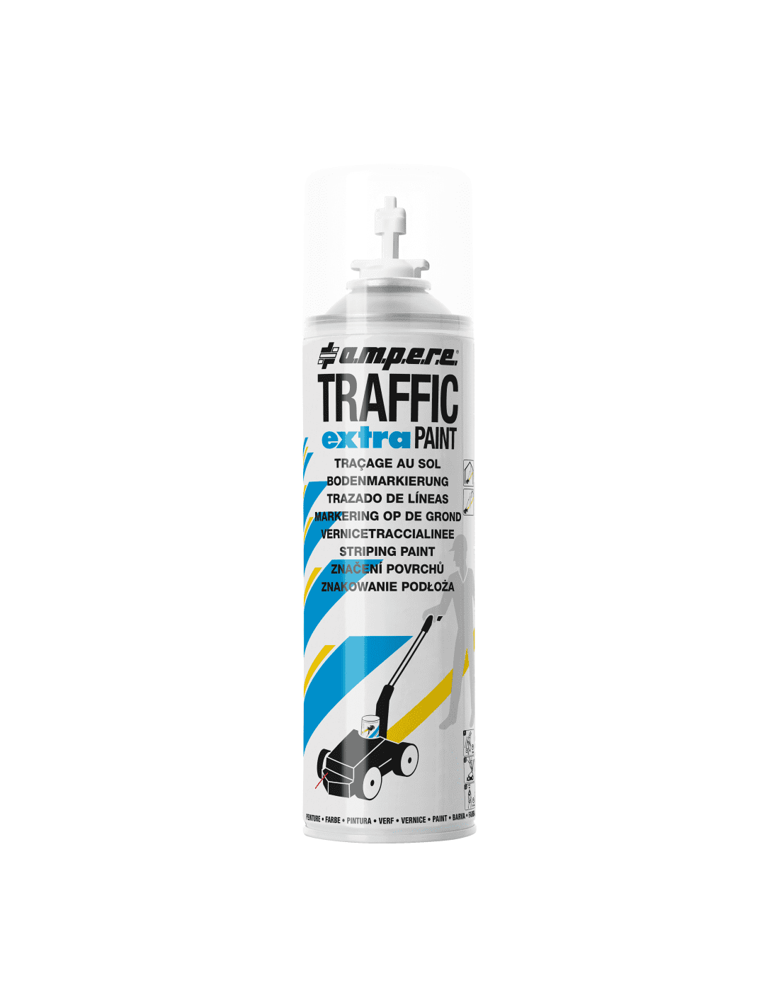 Deze Traffic Extra markeerverf spray van A.M.P.E.R.E. is geschikt voor de SUPER-Striper markeerwagen. De spray is zeer duurzaam, tolueen- en loodvrij. Daarnaast is de verf slijtvast, bestand tegen hoge belastingen en weerbestendig. De spray is daarom geschikt voor binnen- én buitengebruik en is uitermate geschikt voor gebieden met veel verkeer. Door de toepassing van meer kleurpigment wordt een hogere dekking, kleurvastheid en duurzaamheid gerealiseerd.
