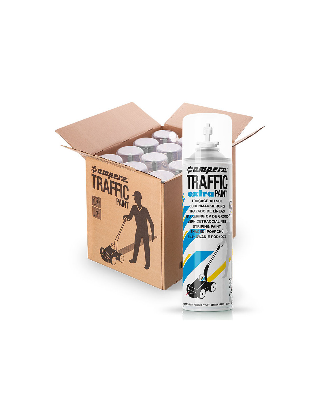 Deze Traffic Extra markeerverf spray van A.M.P.E.R.E. is geschikt voor de SUPER-Striper markeerwagen. De spray is zeer duurzaam, tolueen- en loodvrij. Daarnaast is de verf slijtvast, bestand tegen hoge belastingen en weerbestendig. De spray is daarom geschikt voor binnen- én buitengebruik en is uitermate geschikt voor gebieden met veel verkeer. Door de toepassing van meer kleurpigment wordt een hogere dekking, kleurvastheid en duurzaamheid gerealiseerd.