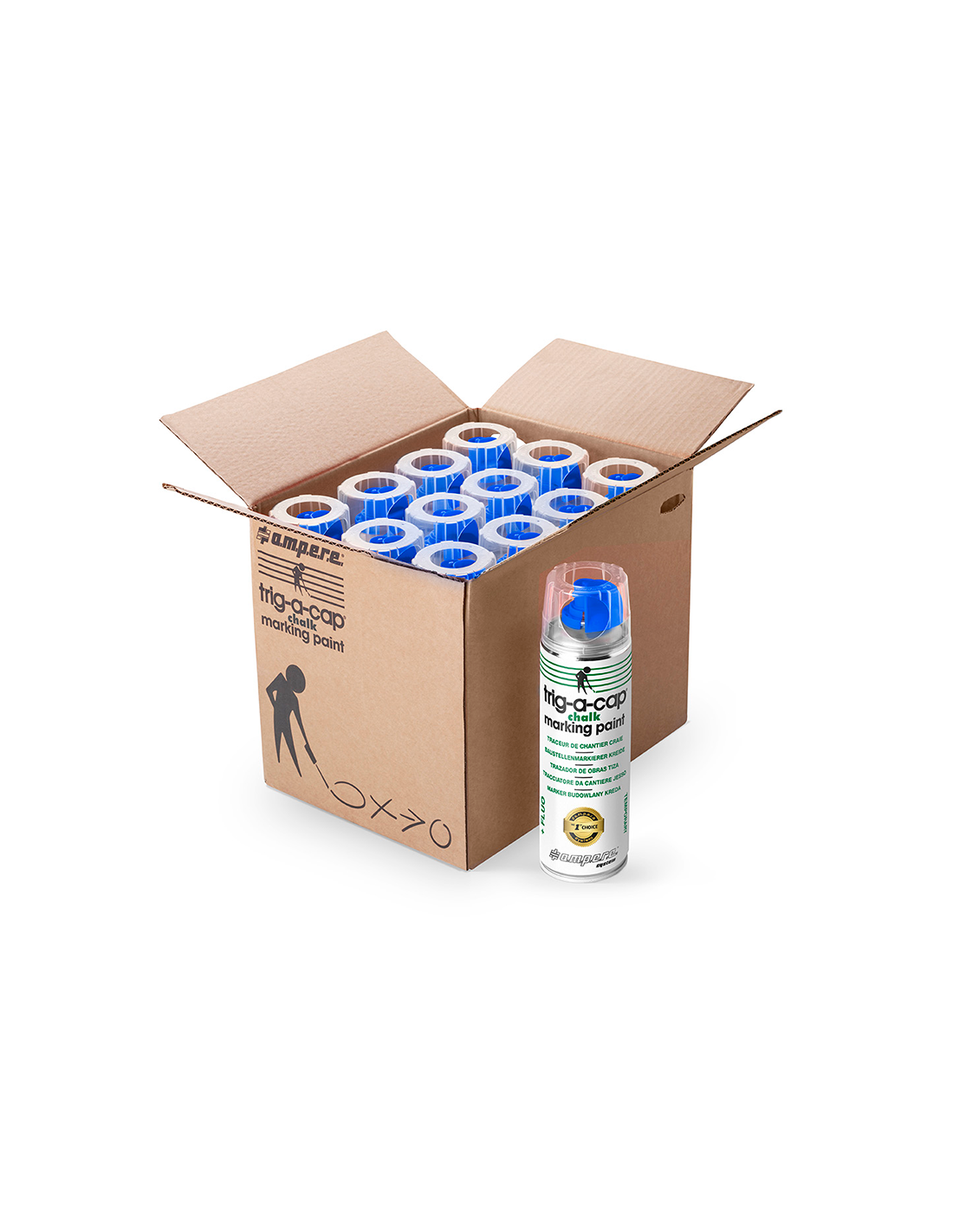 De Trig-a-cap chalk krijtspray, blauw is een krijtspray die geschikt is voor tijdelijke markering. Je kunt deze spray bij uitstek goed gebruiken bij evenementen die van tijdelijke duur zijn. De markering blijft tot 8 weken zichtbaar en is te verwijderen met behulp van water.