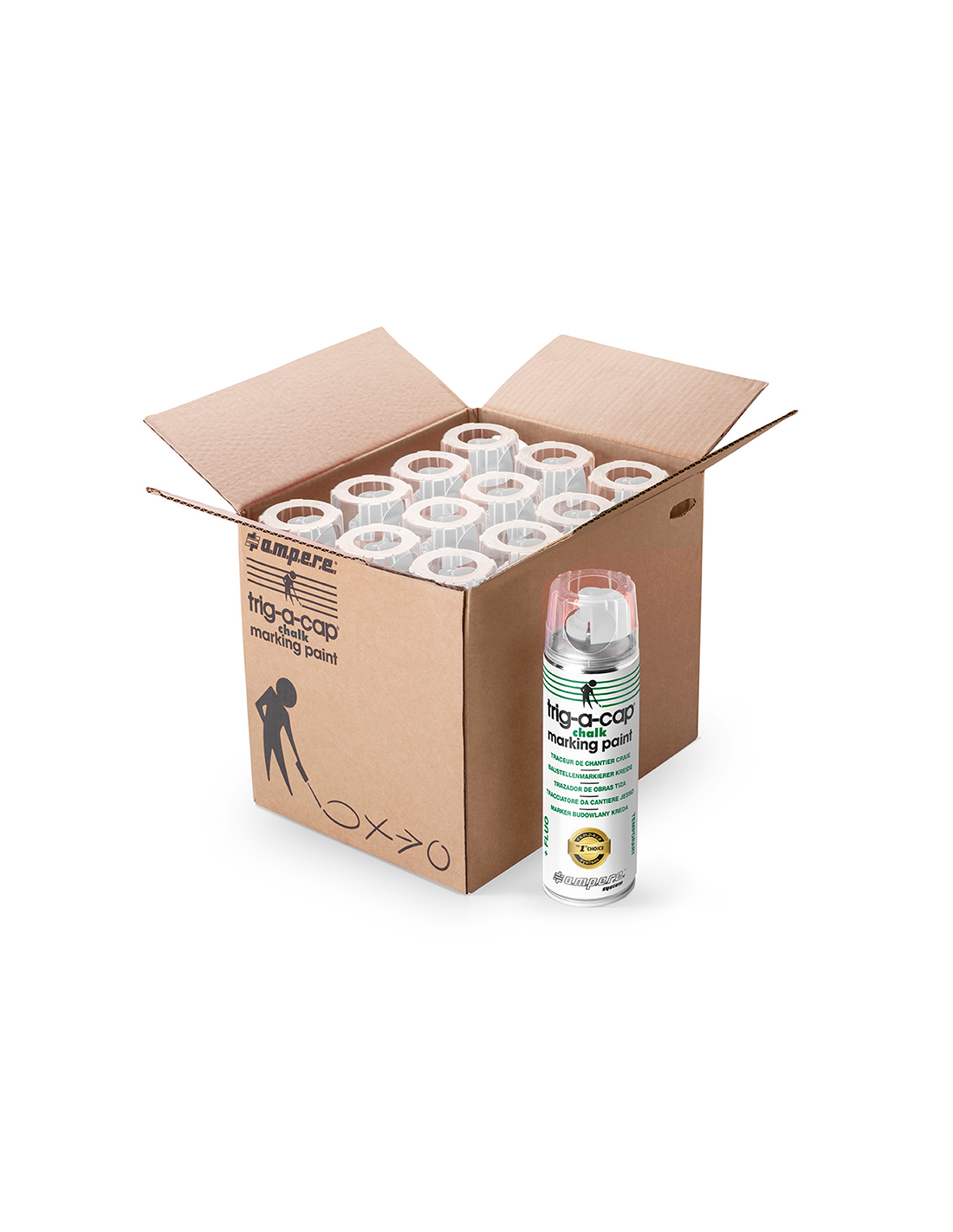 De Trig-a-cap chalk krijtspray, wit is een krijtspray die geschikt is voor tijdelijke markering. Je kunt deze spray bij uitstek goed gebruiken bij evenementen die van tijdelijke duur zijn. De markering blijft tot 8 weken zichtbaar en is te verwijderen met behulp van water.