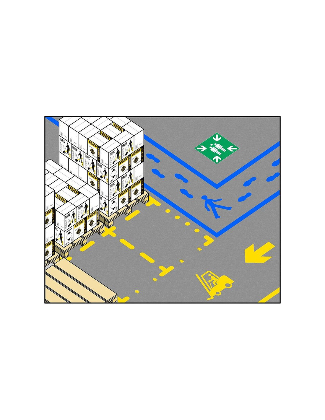 - Met heftruck, verzamelplaats, looppad, pijl, voetganger en diverse markeringen