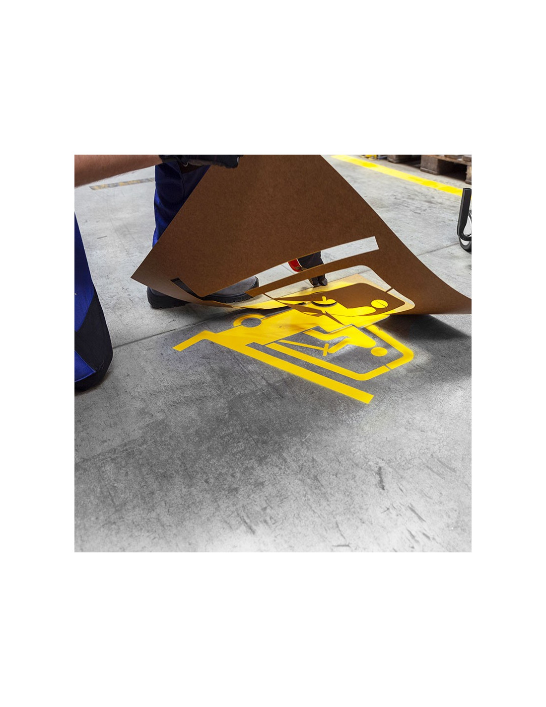 Met deze Ampere Traffic spuitsjablonen set industrie heb jij een handige en herbruikbare set van 6 sjablonen voor het markeren van verschillende facetten in jouw magazijn. De sjablonen zijn gemaakt van sterk karton en zijn daarom duurzaam en stevig. Je kunt deze sjablonen keer op keer opnieuw gebruiken, waardoor het een kosteneffectieve oplossing is voor het markeren van het magazijn. Het sjabloon is perfect te gebruiken in combinatie met Ampere Traffic paint markeerverf.