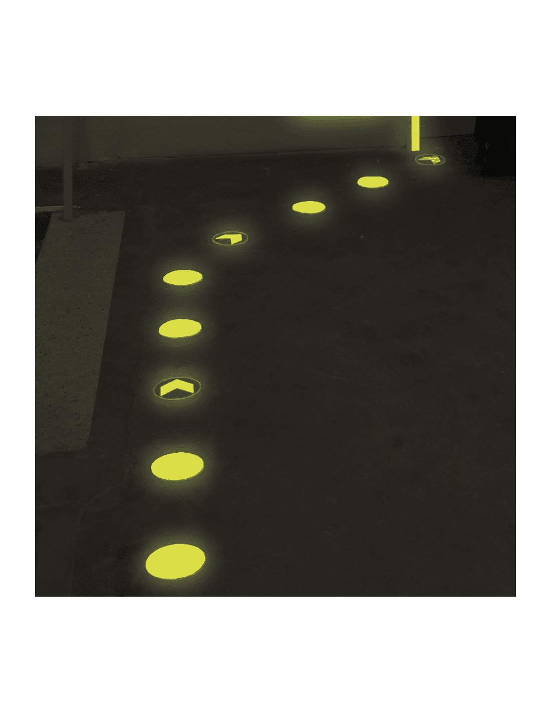De Lichtgevende vloermarkeringsstippen, 10 stuks kun je gebruiken om een vluchtroute mee te markeren op de grond. Op die manier zorg je ervoor dat mensen de nooduitgang in een noodsituatie snel kunnen vinden.