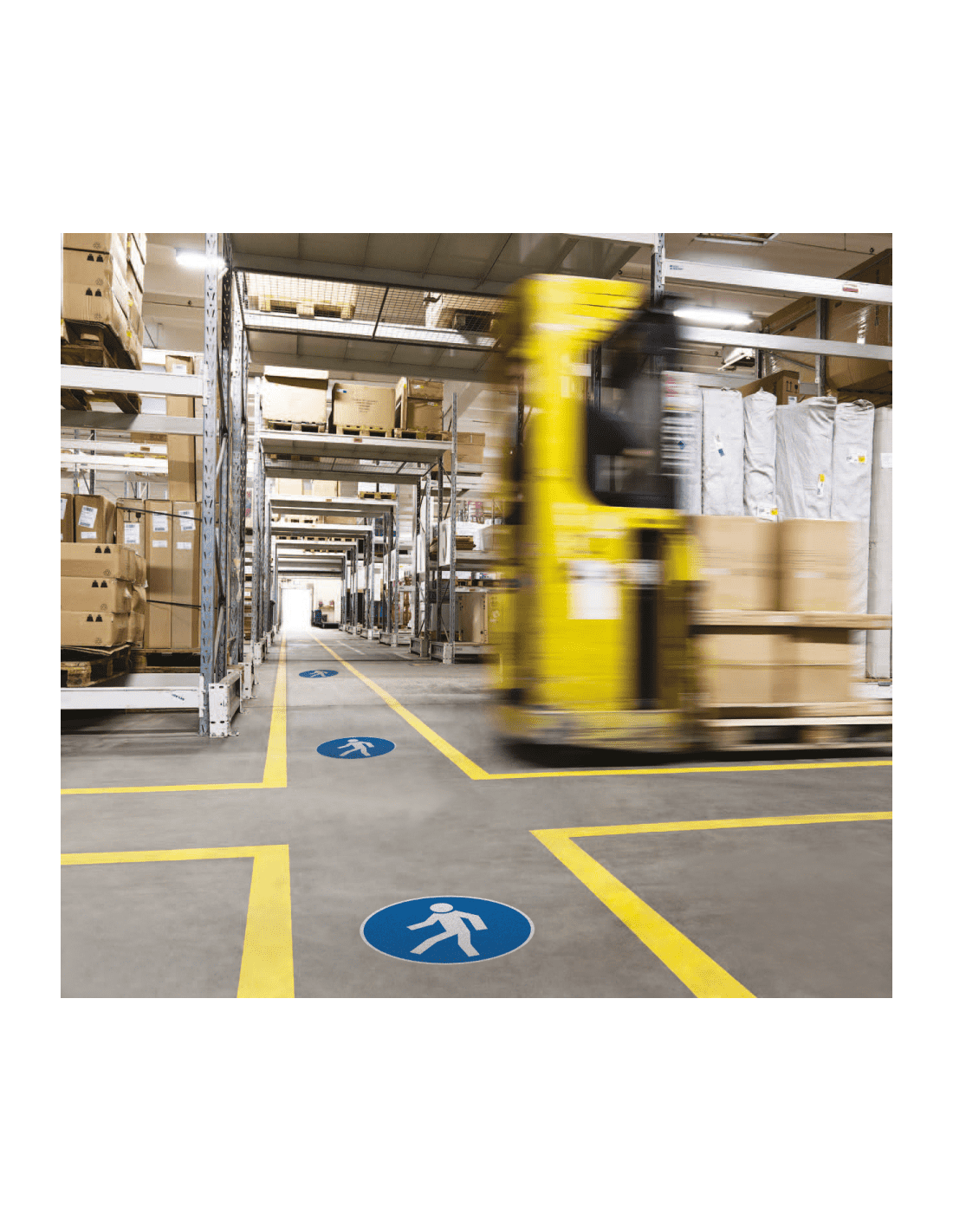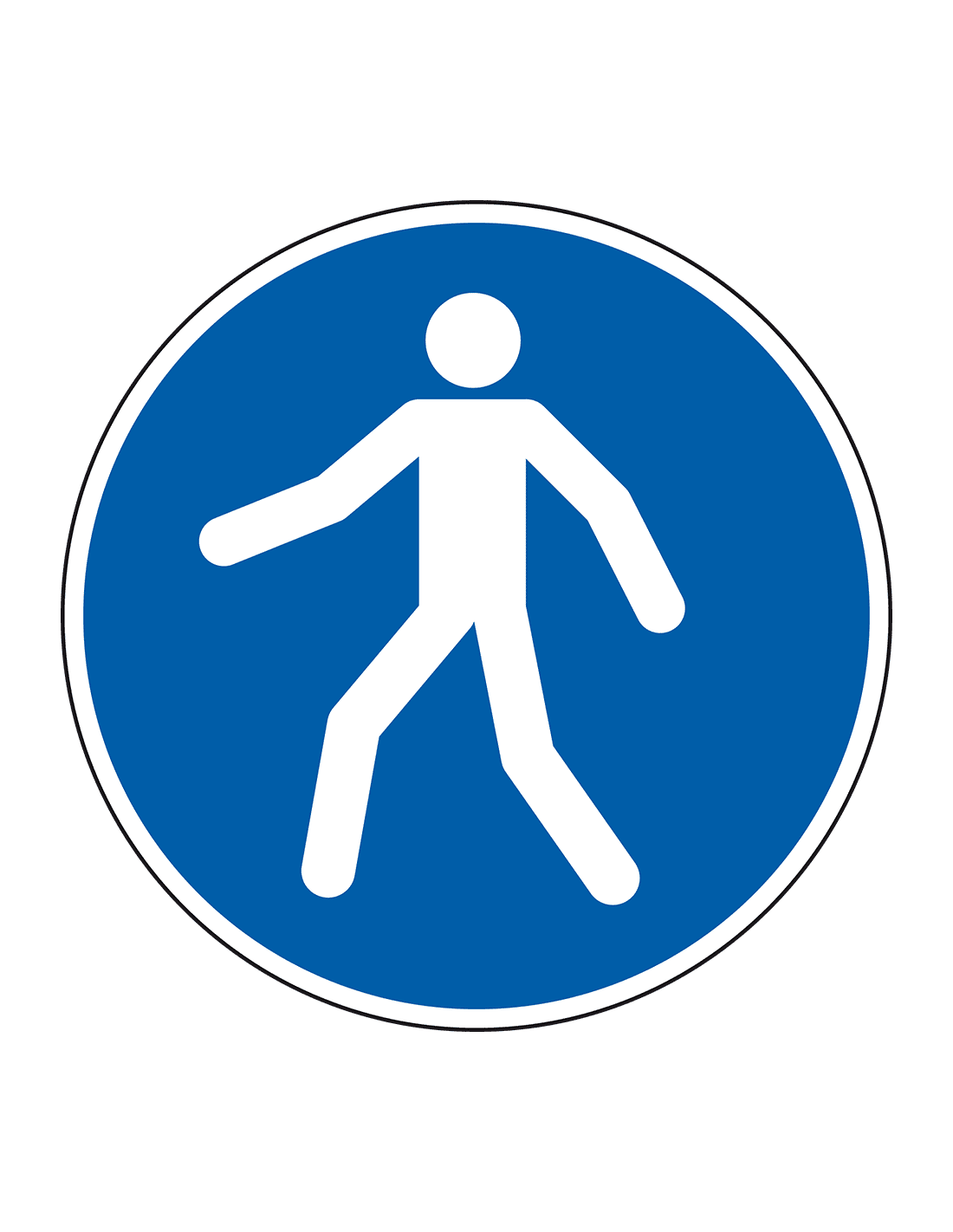 De Vloersticker verplicht voetpad, extra hoge slipweerstand is ideaal om aan te geven dat er hiet sprake is van een verplicht voetpad. Deze sticker is gemaakt volgens de officiële norm ISO 7010 en verkrijgbaar in afmeting 400 mm.