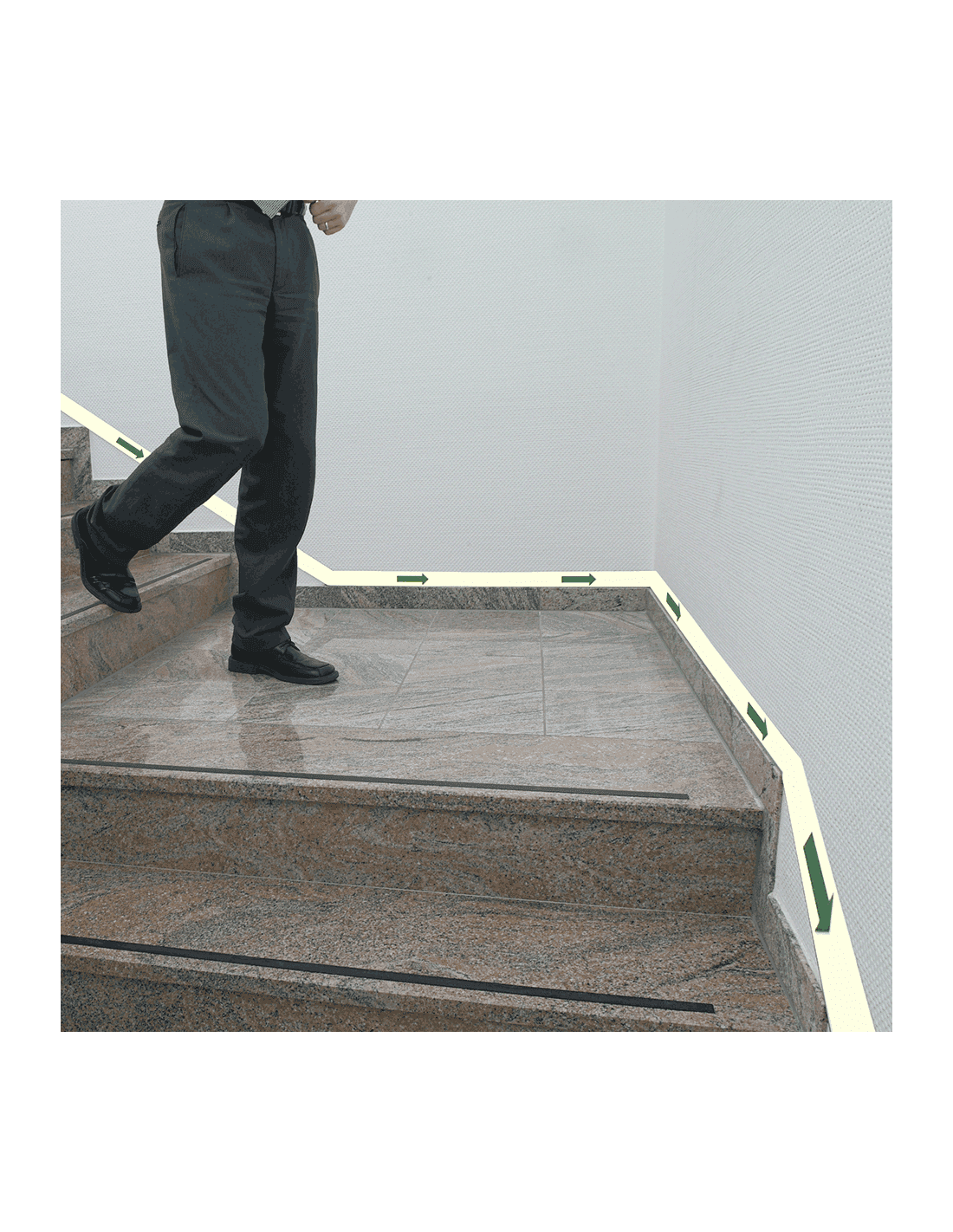 Deze glow in the dark tape met groene richtingspijlen is de perfecte oplossing om vluchtroutes aan te geven. Of het nu gaat om een stroomuitval of een donkere omgeving, deze tape zorgt ervoor dat de weg gemakkelijk te vinden is. Zowel binnen als buiten kan deze tape gebruikt worden.