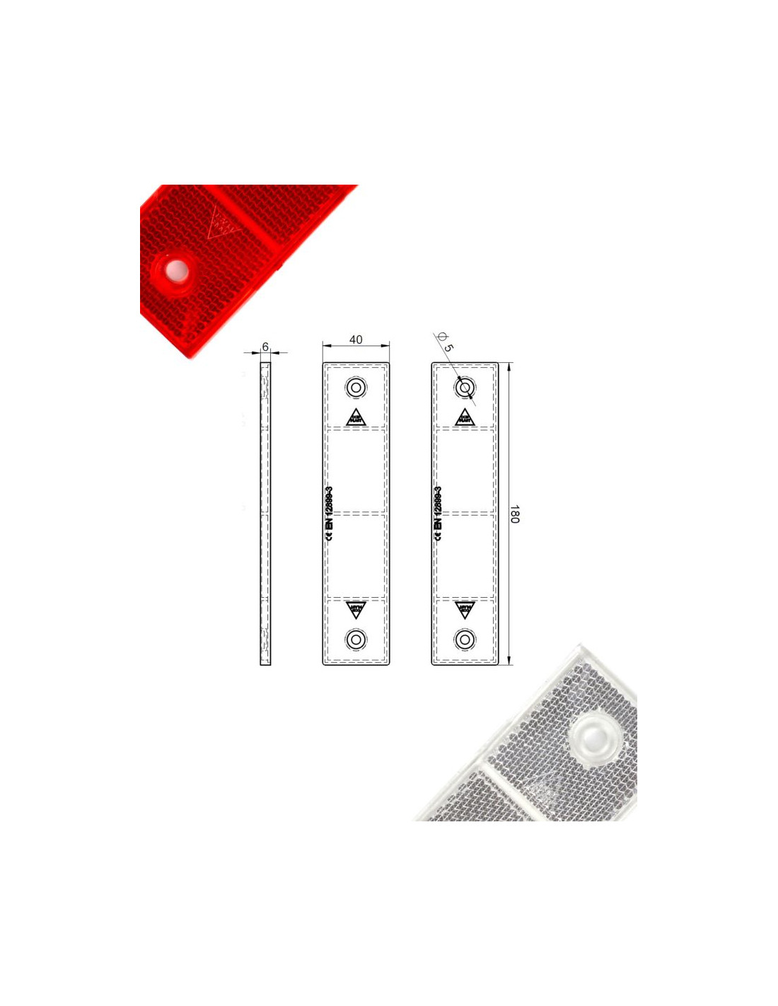Gemaakt van hoogwaardig kunststof dat bestand is tegen verschillende weersomstandigheden, is deze reflector ontworpen om lang mee te gaan. Je hoeft je geen zorgen te maken over verkleuring of verslechtering van de prestaties. Met zijn opvallende rode kleur en afmetingen van 180 x 40 x 6 mm zorgt deze reflector ervoor dat je gegarandeerd opvalt.