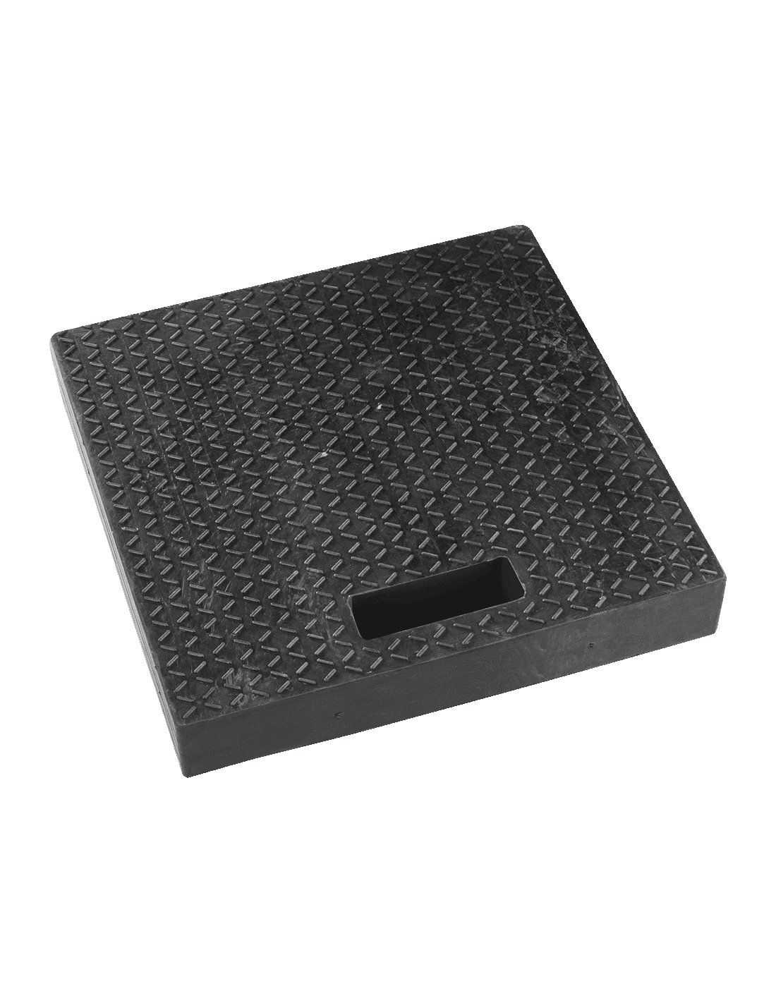 Deze beschermplaat gemaakt van gehard rubber zorgt ervoor dat je ondergrond niet beschadigd raakt wanneer je een zware belasting op de grond wilt zetten. De stempelplaat is verkrijgbaar in verschillende afmetingen en kan extreme belastingen aan.