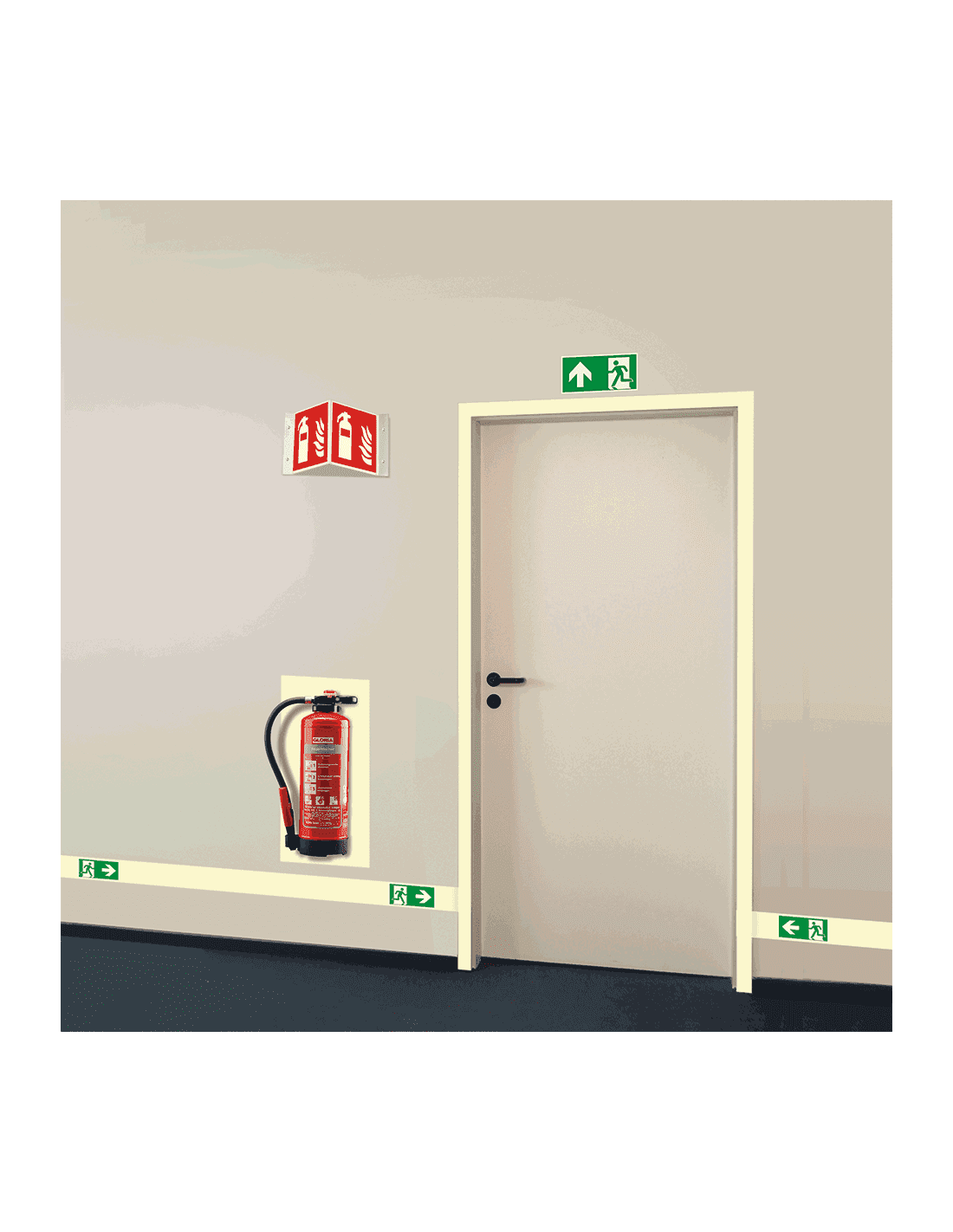 - Dit materiaal is geschikt voor ruimtes met gedempte of slechts tijdelijke verlichting; voor degenen die onder de BGR 216 vallen: hotels, ziekenhuizen, luchthavens, evenementenlocaties, fabrieken en magazijnen enz.