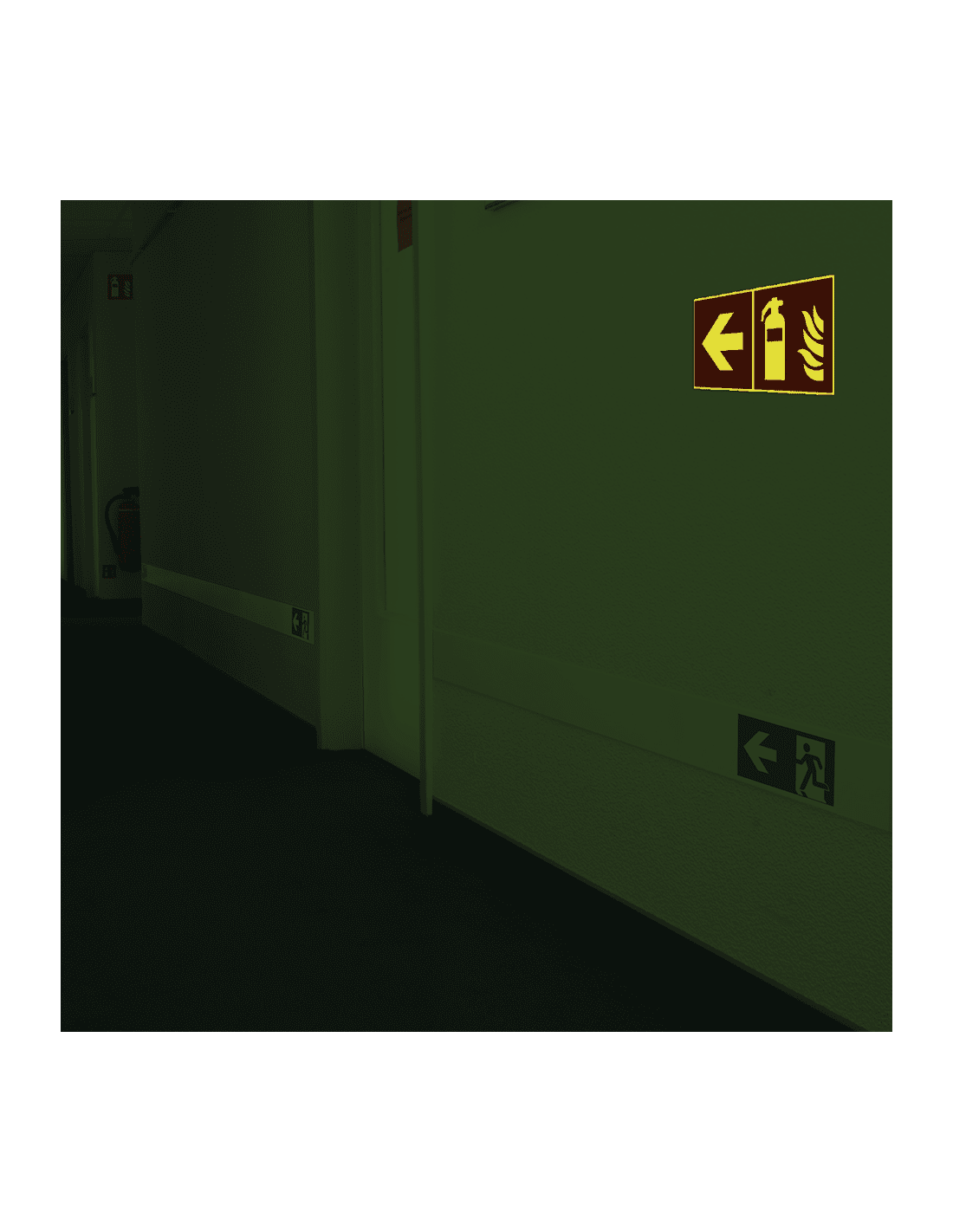 Dit extra lichtgevende bord laat door middel van het brand pijl symbool zien welke richting iemand op moet om een blusmiddel te vinden. Zo kan iedereen in een noodsituatie duidelijk zien waar deze te vinden is, zodat de brand snel kan worden geblust.