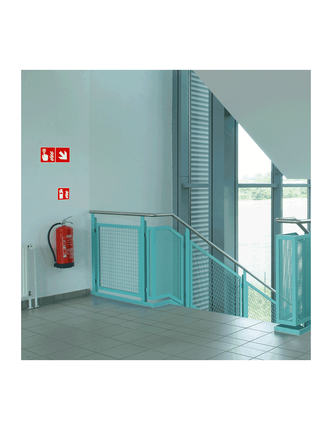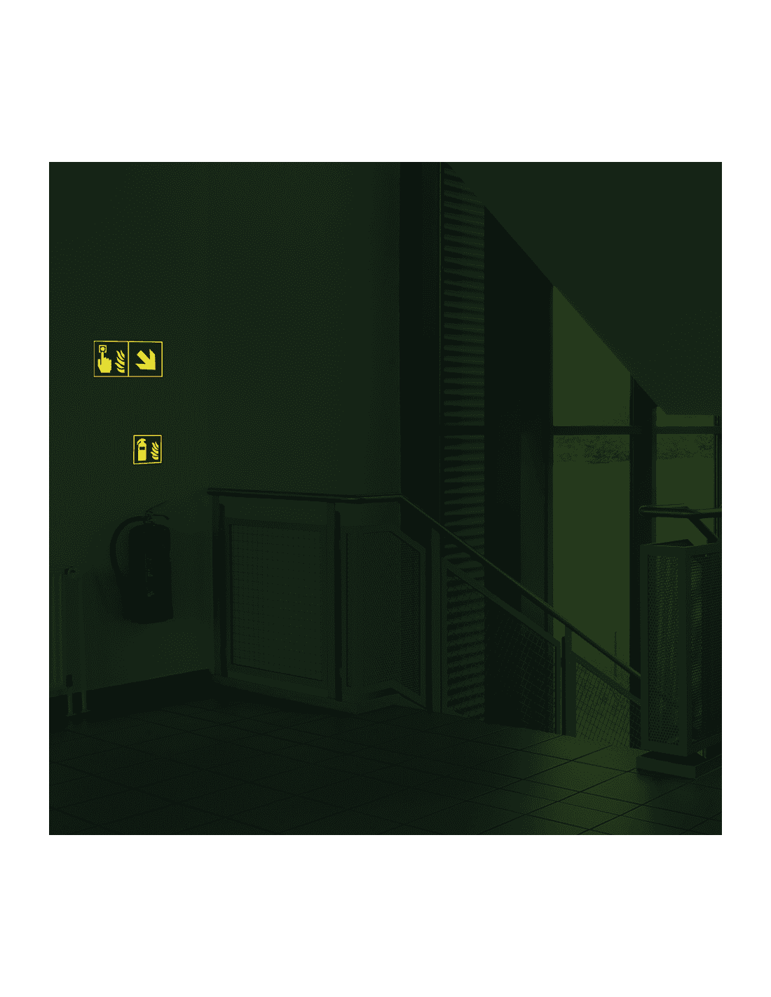 - Dit materiaal is geschikt voor ruimtes met gedempte of slechts tijdelijke verlichting; voor degenen die onder de BGR 216 vallen: hotels, ziekenhuizen, luchthavens, evenementenlocaties, fabrieken en magazijnen enz.