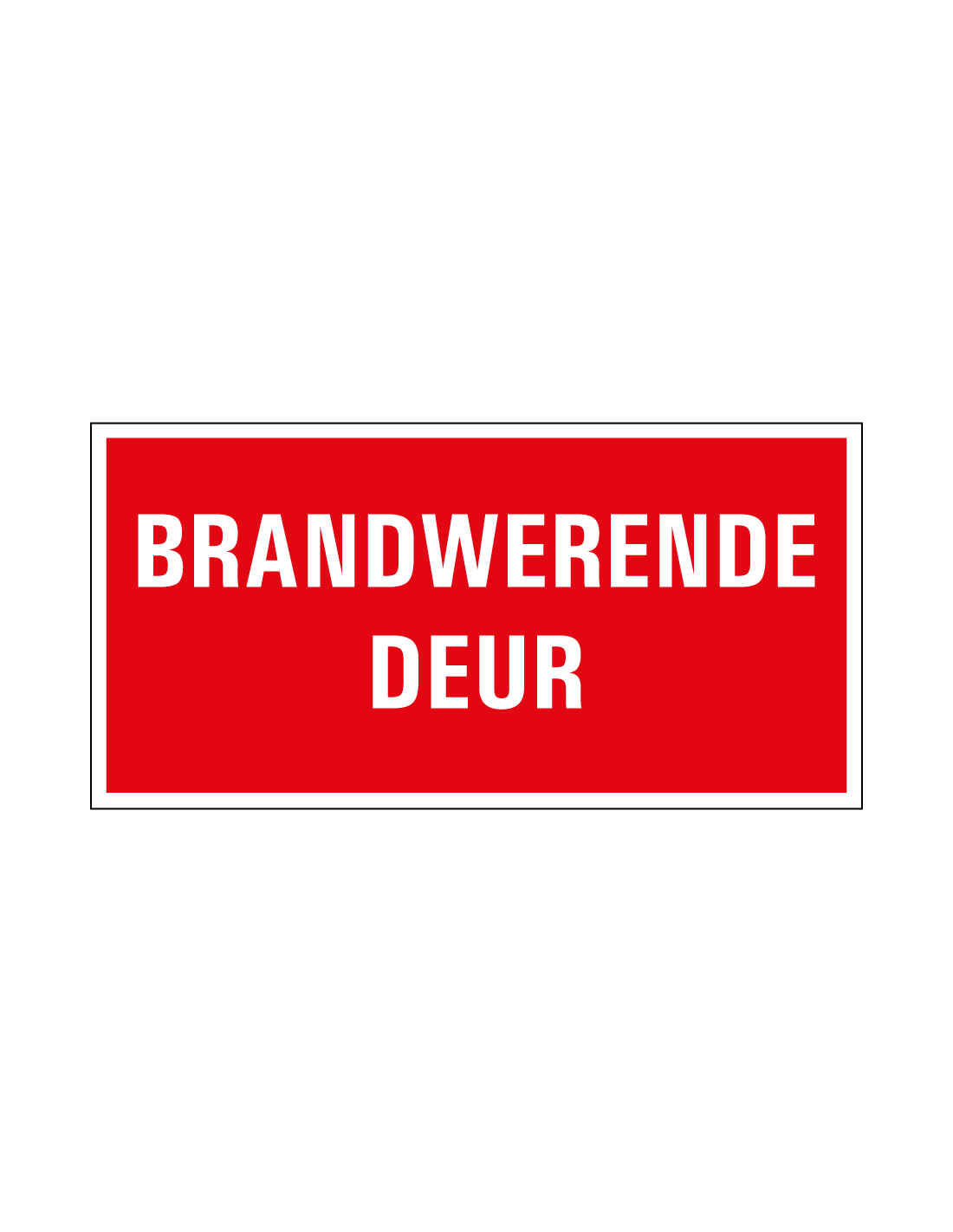 Het Brandwerende deur bord met tekst - kunststof is een rechthoekig bord. Het bord is voorzien van de Nederlandse tekst "Brandwerende deur" in witte letters op een rode achtergrond. Het bord is verkrijgbaar in verschillende afmetingen en is geschikt voor binnen- en buitengebruik.