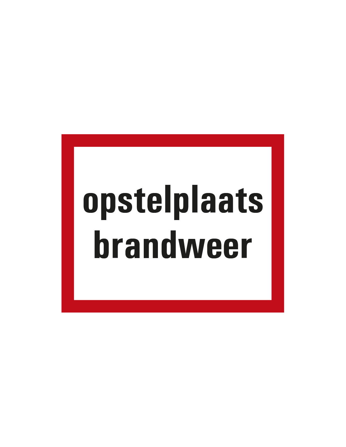 Dit bord met tekst opstelplaats brandweer geeft aan dat er hier sprake is van een opstelplaats voor de brandweer. Zo is duidelijk waar de brandweer zichzelf moet opstellen in de buurt van dit gebouw.