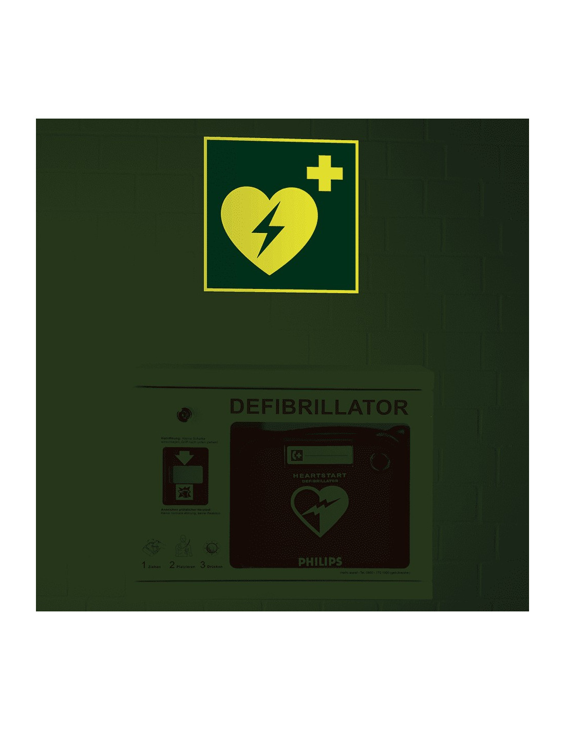 Dit extra lichtgevend AED bord laat zien dat er op deze plek een AED beschikbaar is. Op die manier kunt u mensen direct helpen in het geval van een hartstilstand.