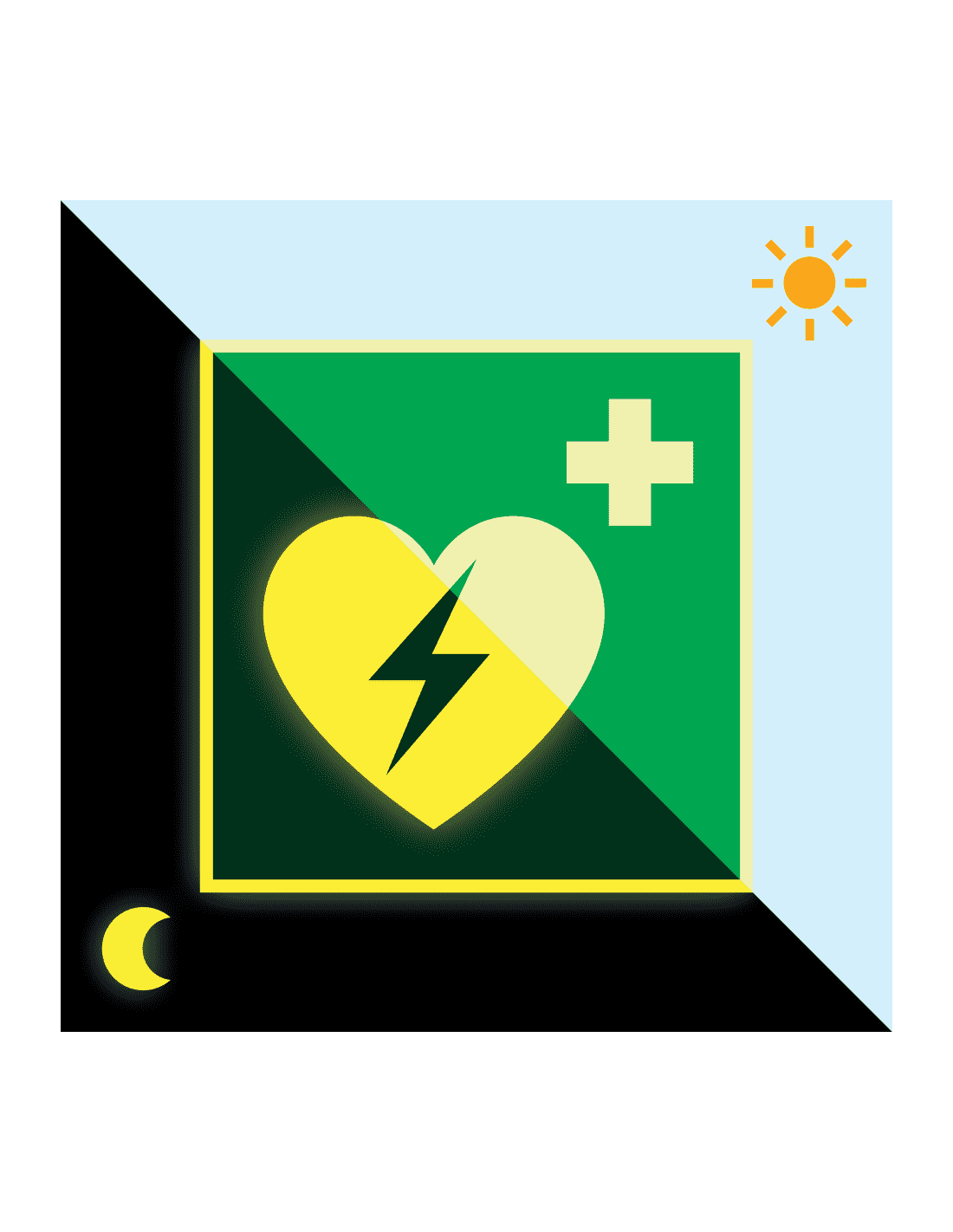 Belangrijkste kenmerken extra lichtgevend AED bord